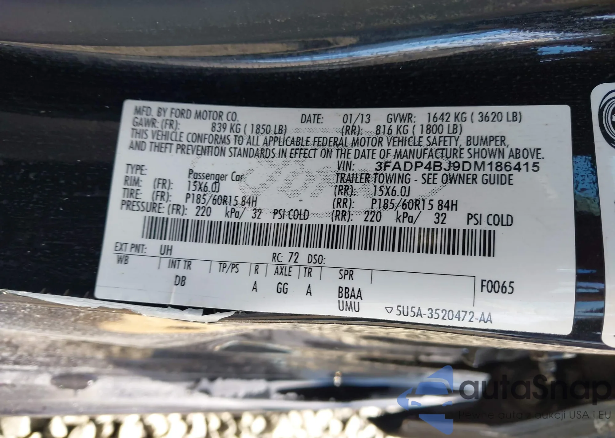 LOT: 44411357 VIN: 3FADP4BJ9DM186415