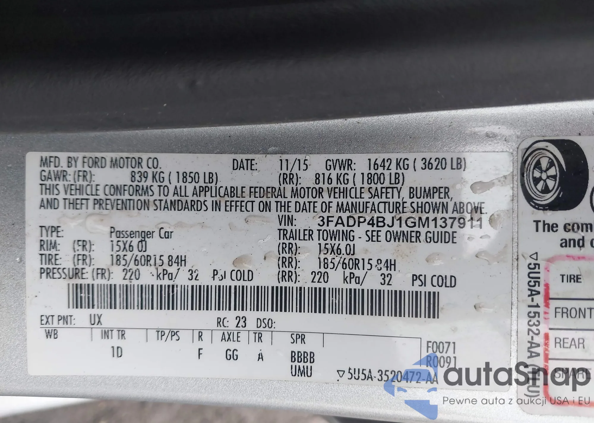 LOT: 44522569 VIN: 3FADP4EJ8FM152867