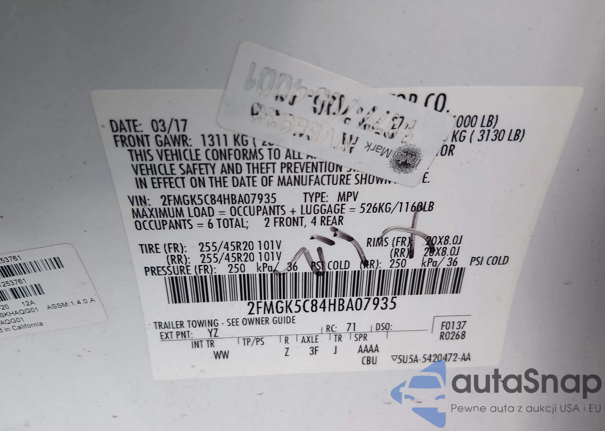 • VIN 2FMGK5D83FBA20137