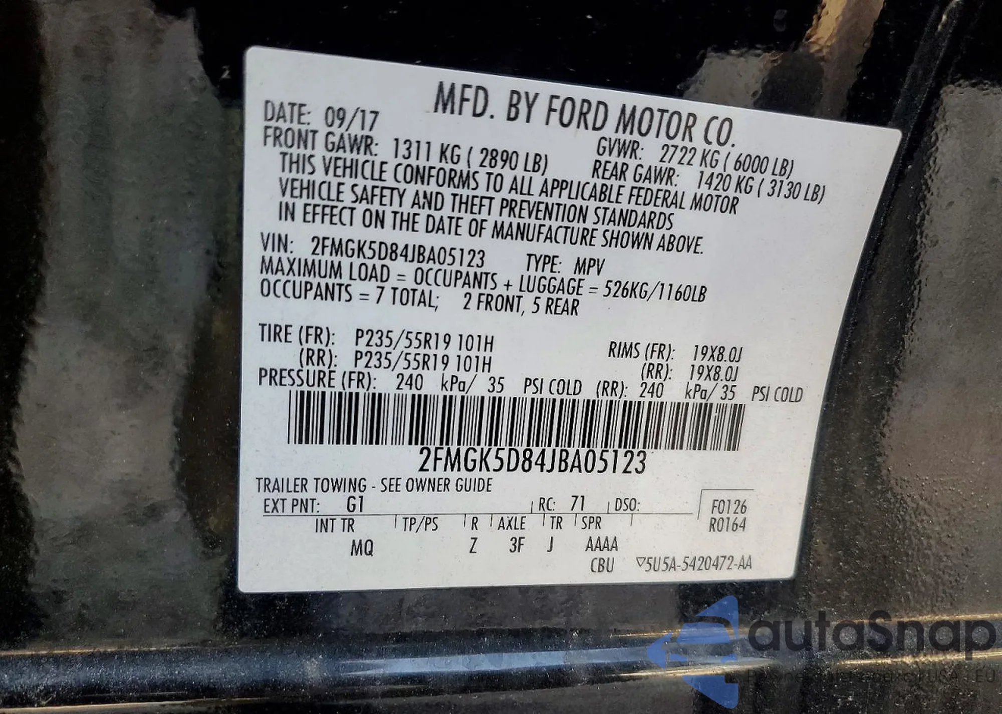 • VIN 2FMGK5D84JBA05123