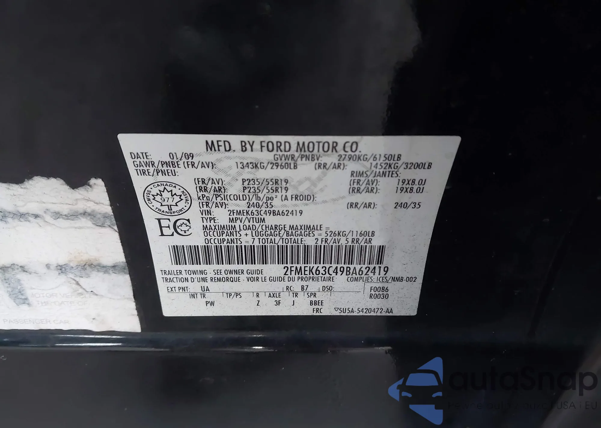 • VIN 2FMEK63C49BA62419