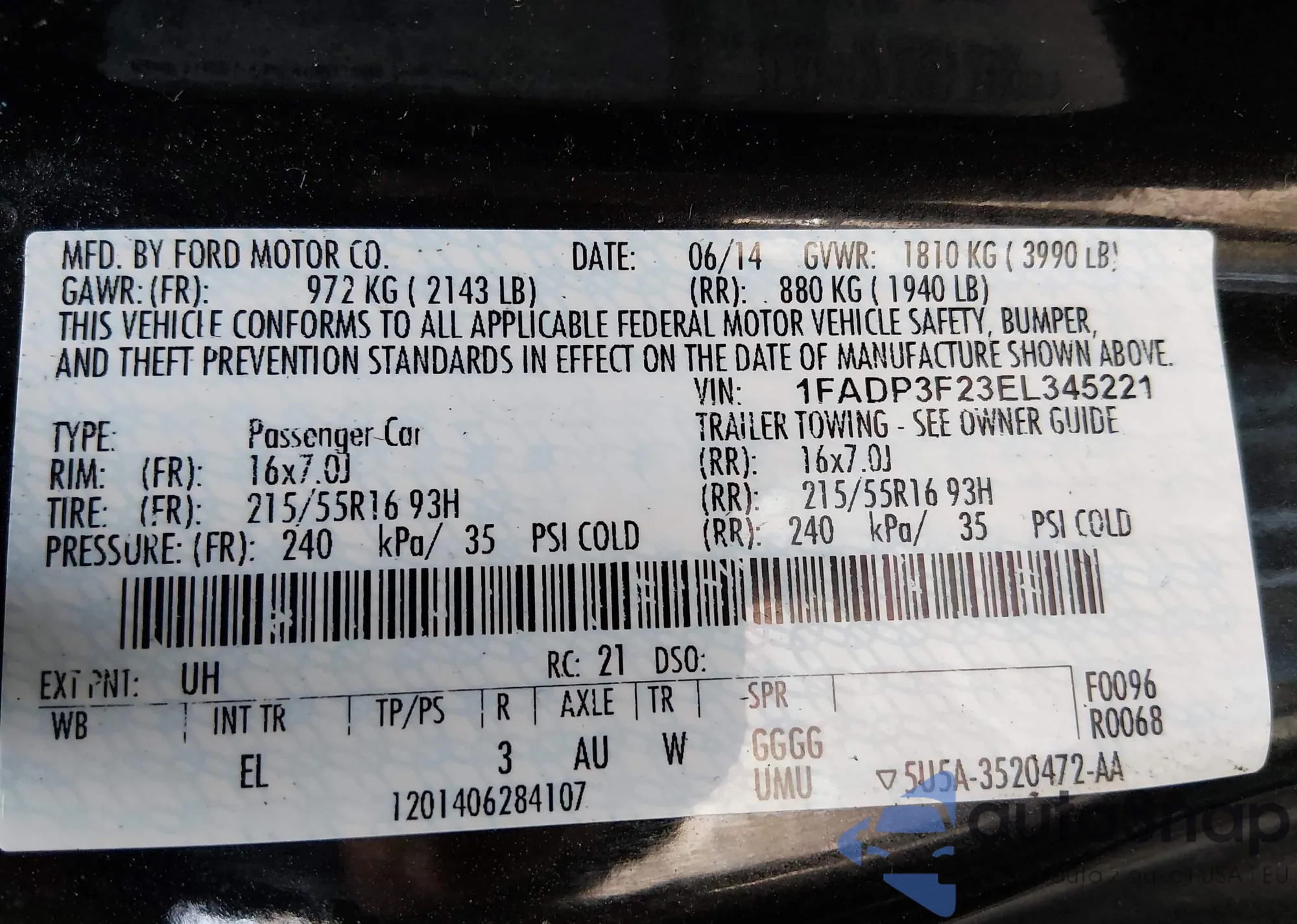 LOT: 44045002 VIN: 1FADP3F23EL345221