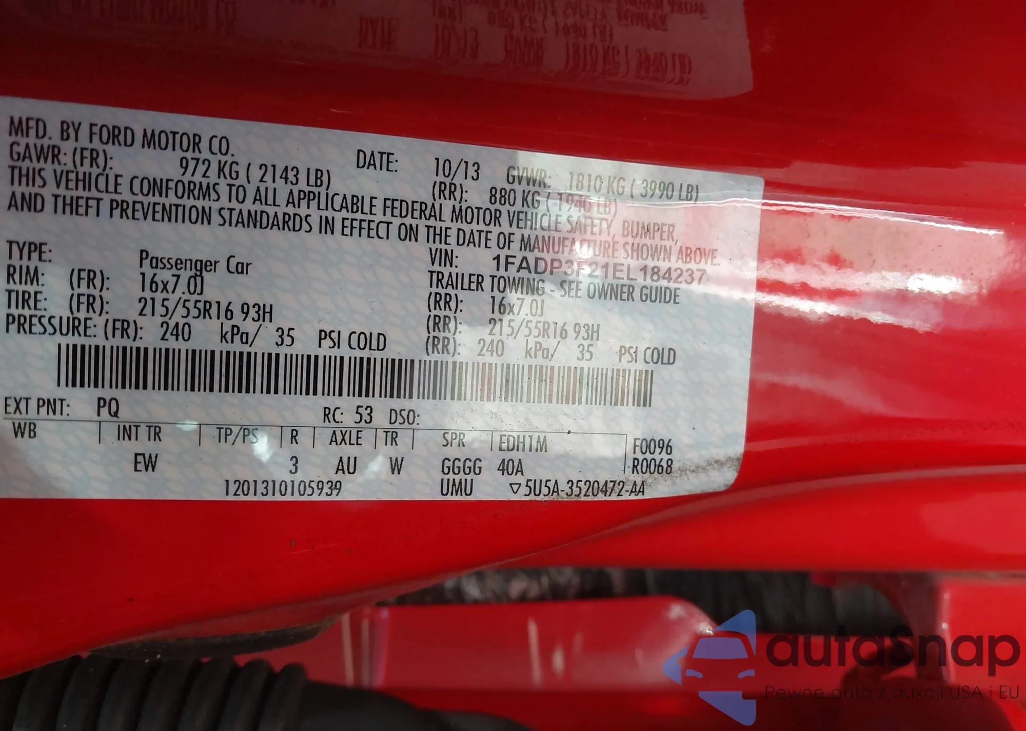 LOT: 44209675 VIN: 1FADP3F21EL184237