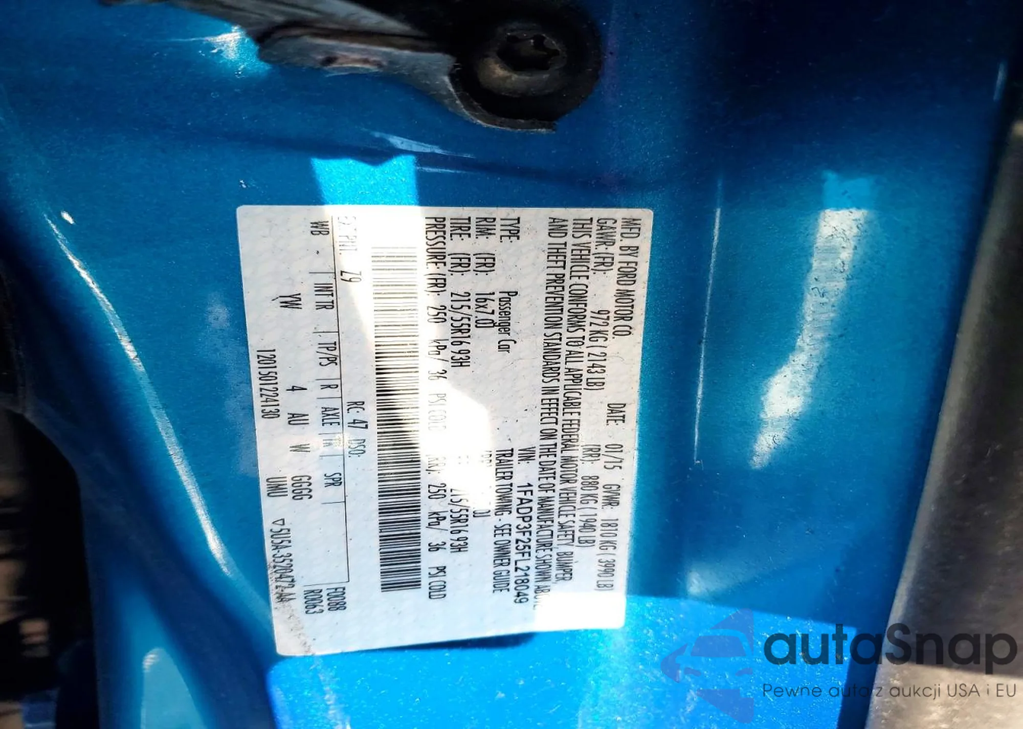 LOT: 76146655 VIN: 1FADP3F25FL218049