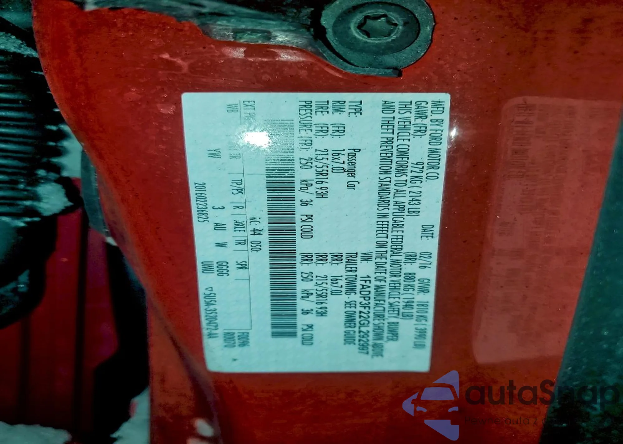 LOT: 97980545 VIN: 1FADP3F22GL292997