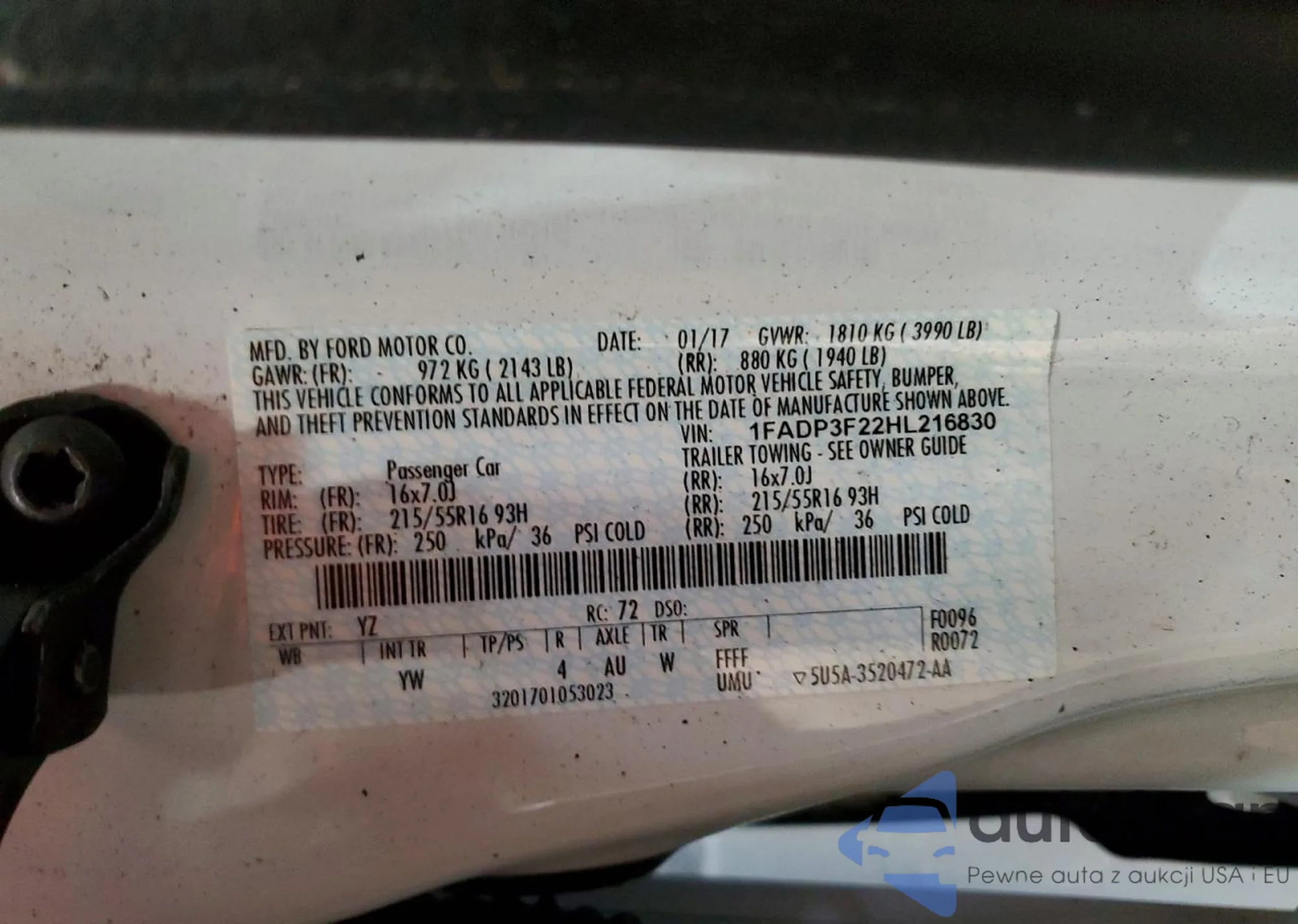 • VIN 1FADP3F22HL216830