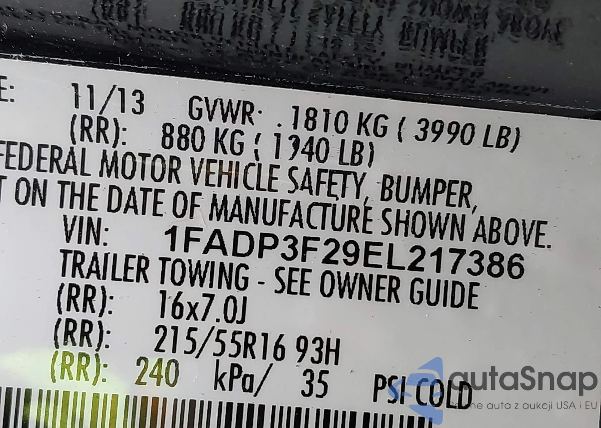 • VIN 1FADP3F29EL217386