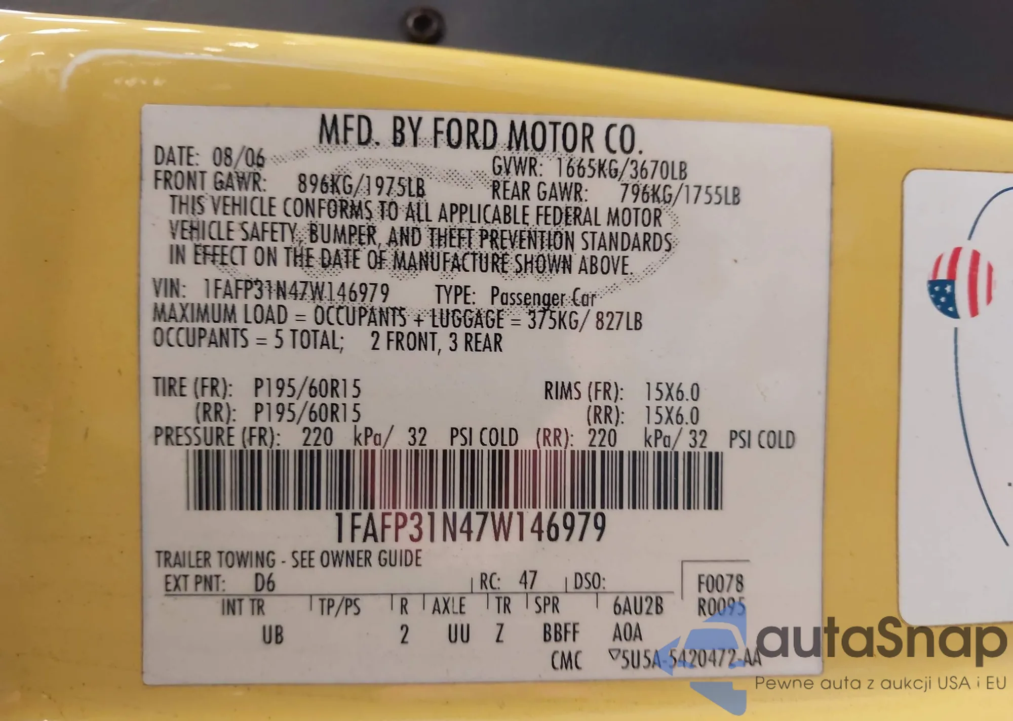 LOT: 44136268 VIN: 1FAFP31N47W146979