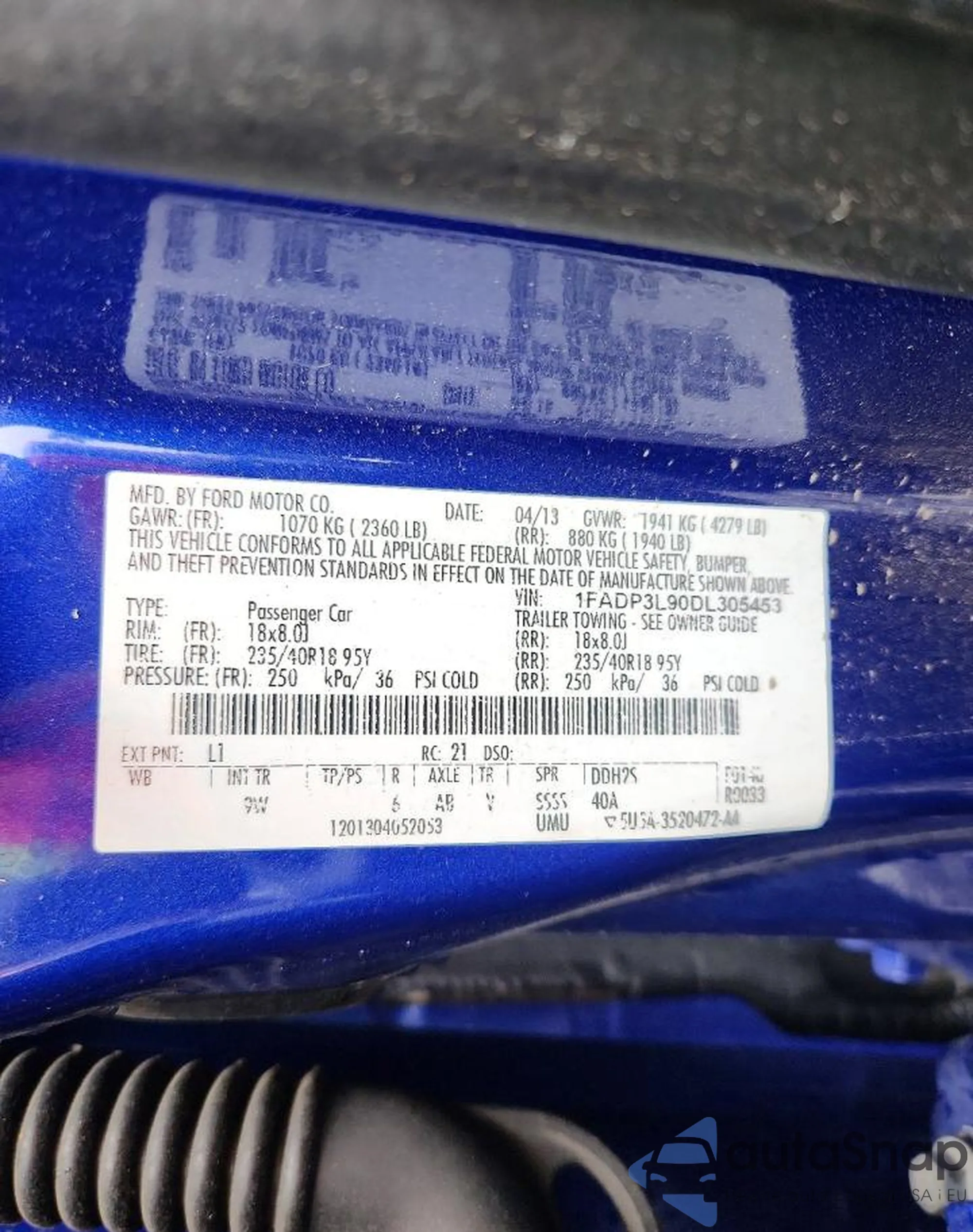 • VIN 1FADP3L90DL305453