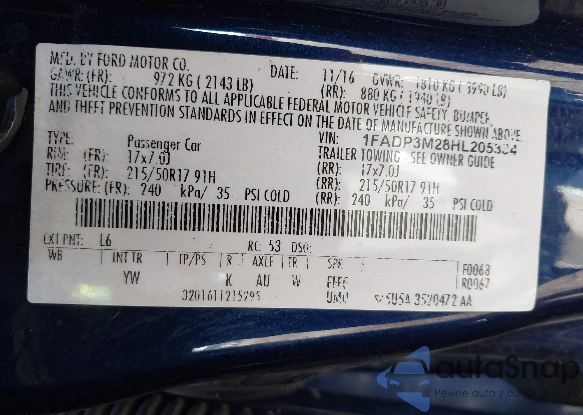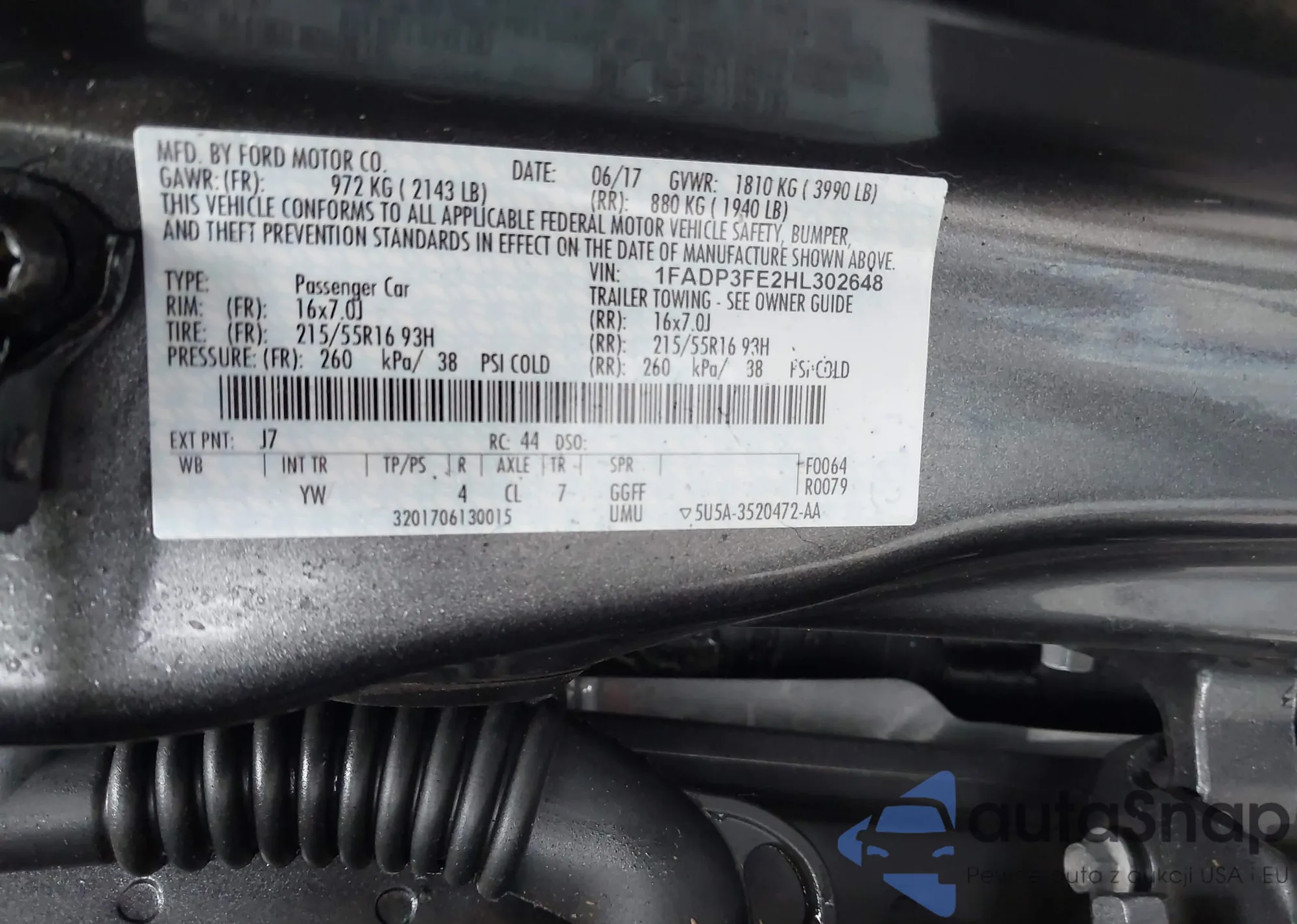 • VIN 1FADP3FE2HL302648
