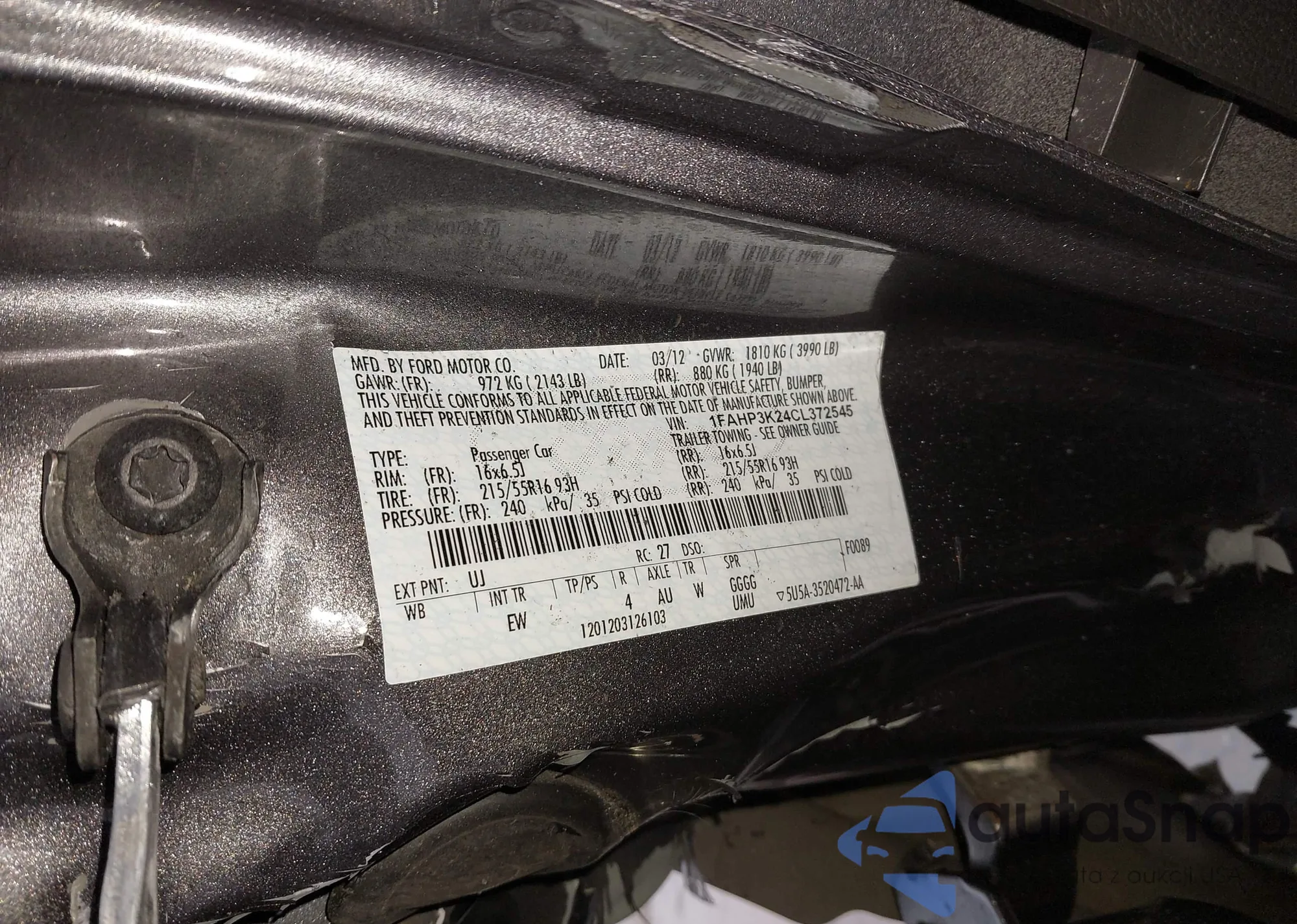 • VIN 1FAHP3K24CL372545