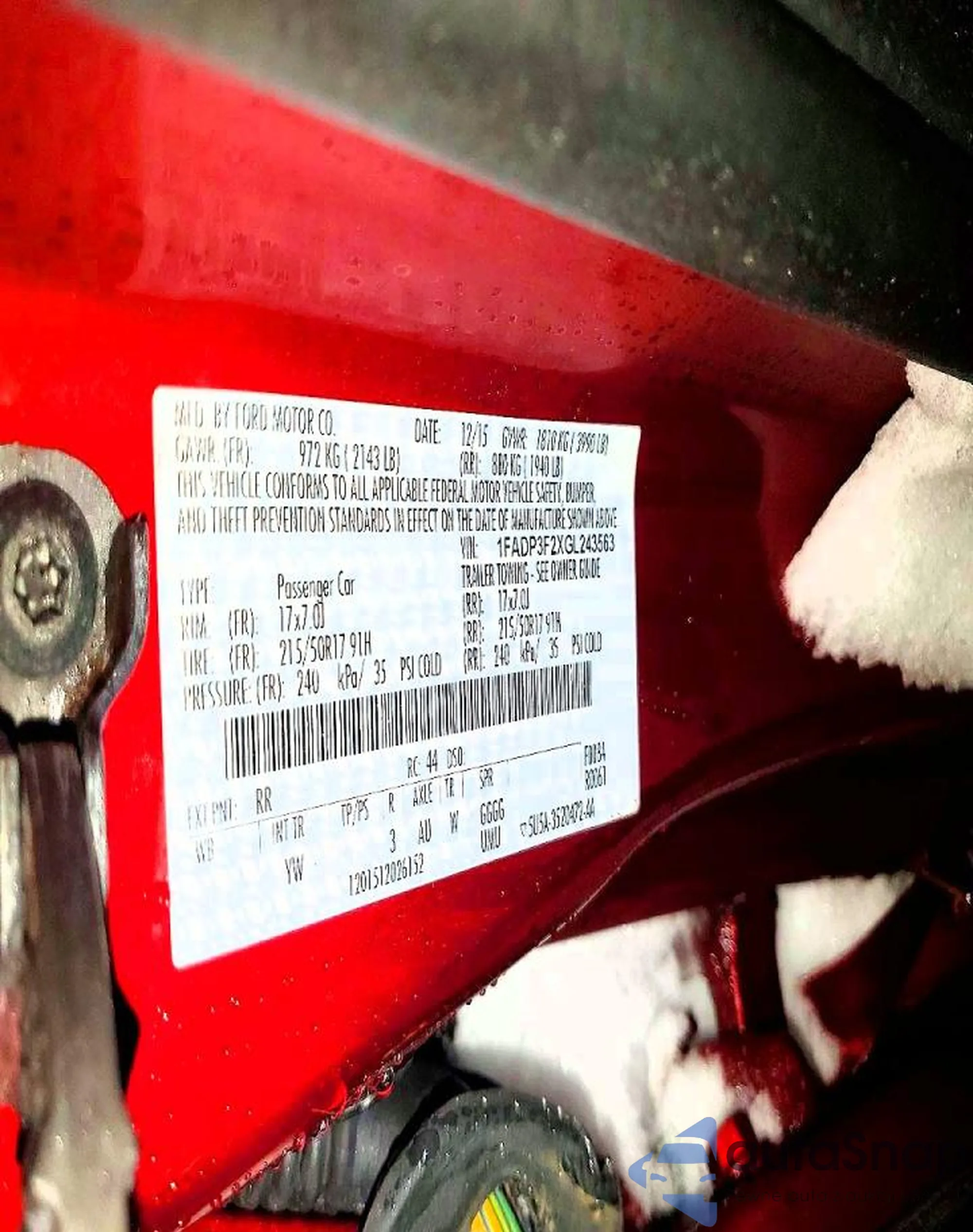• VIN 1FADP3F2XGL243563