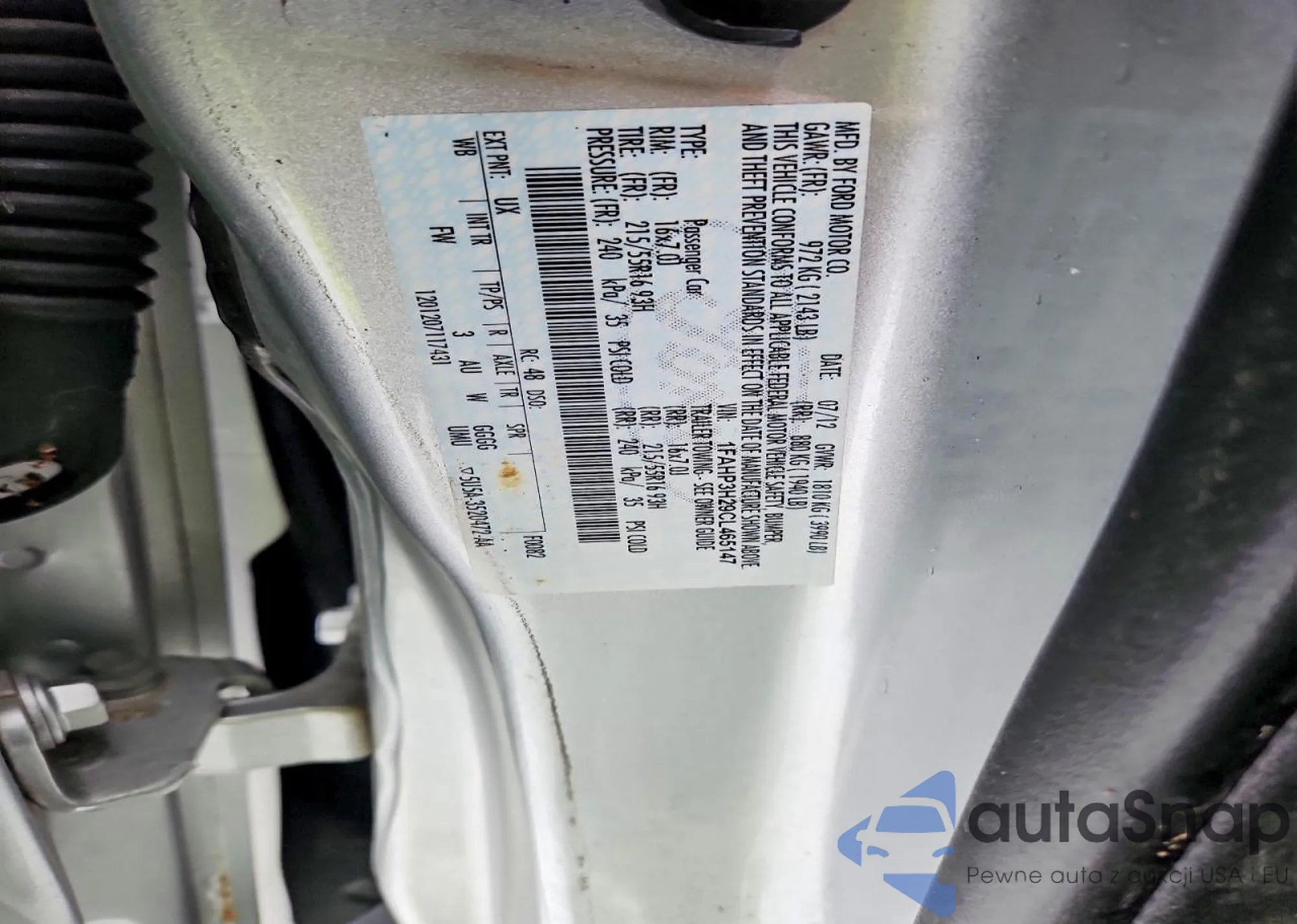 • VIN 1FAHP3H29CL465147
