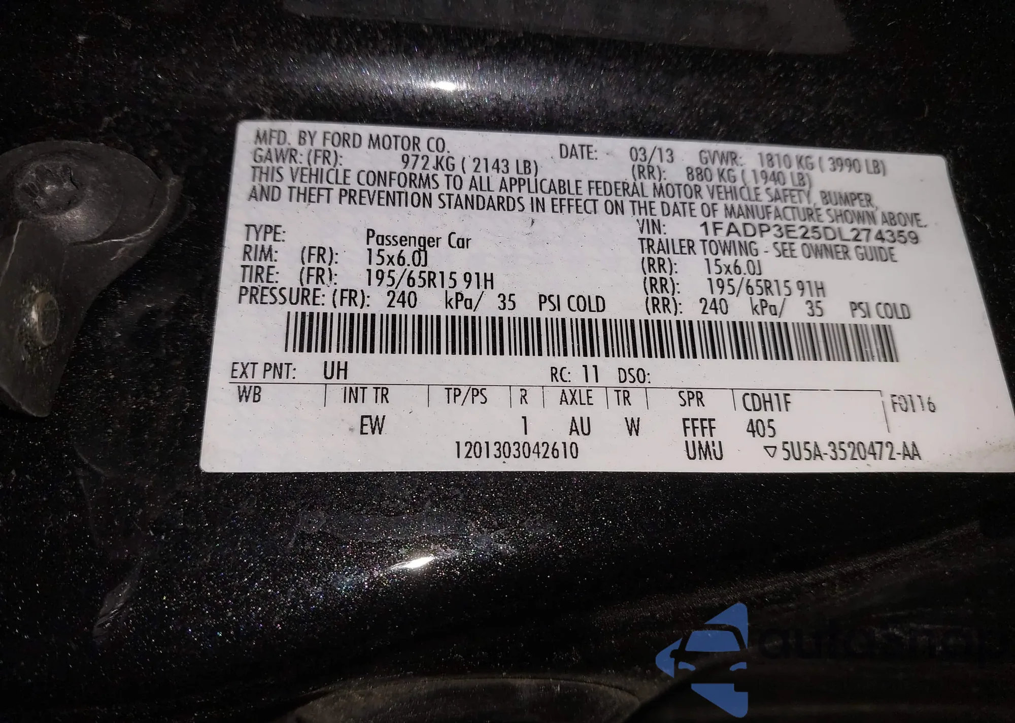 • VIN 1FADP3E25DL274359