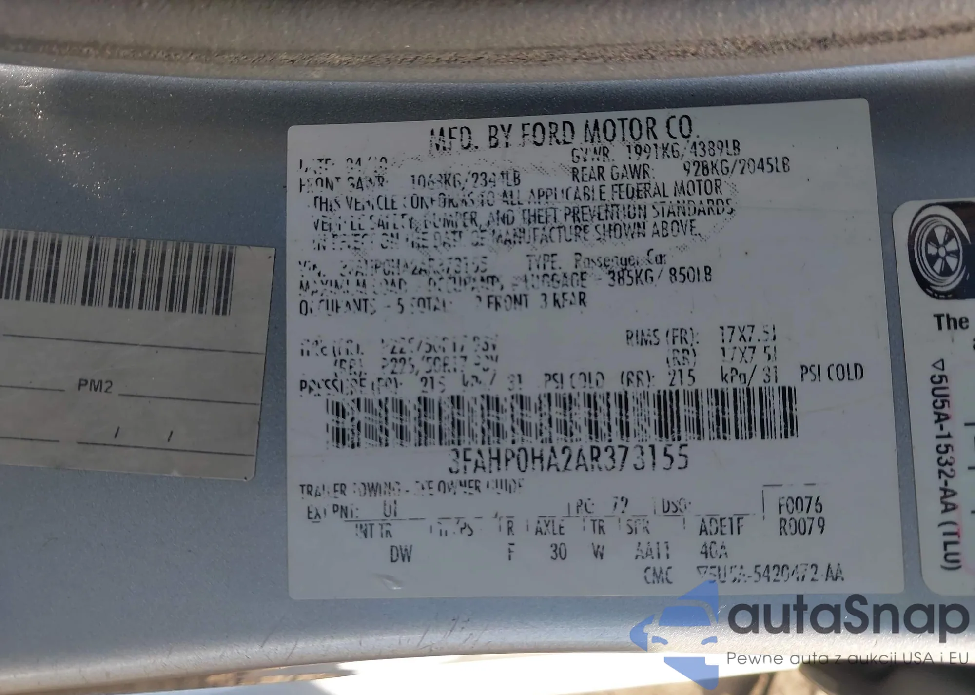 • VIN 3FAHP0HA2AR373155