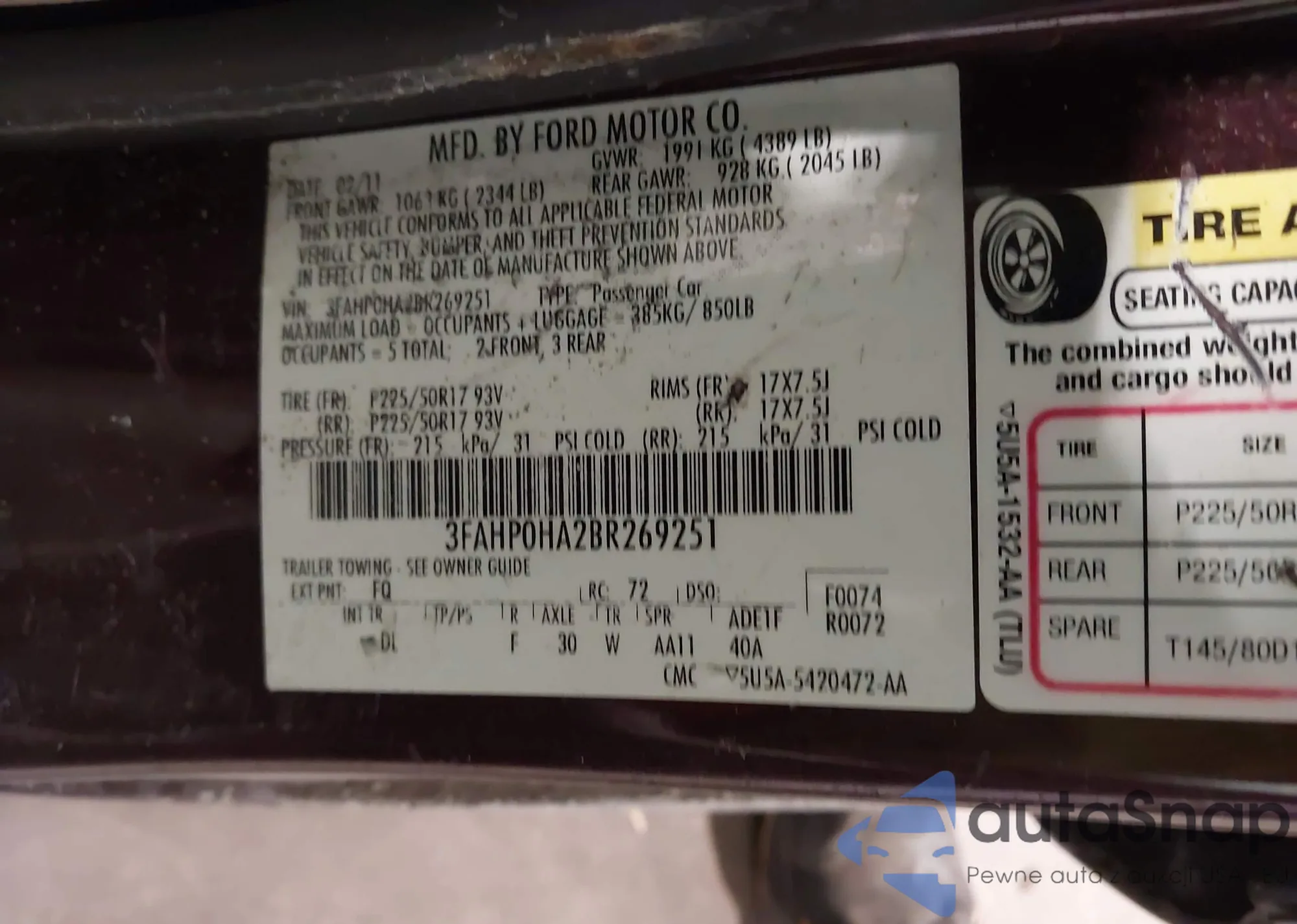 • VIN 3FAHP0HA2BR269251
