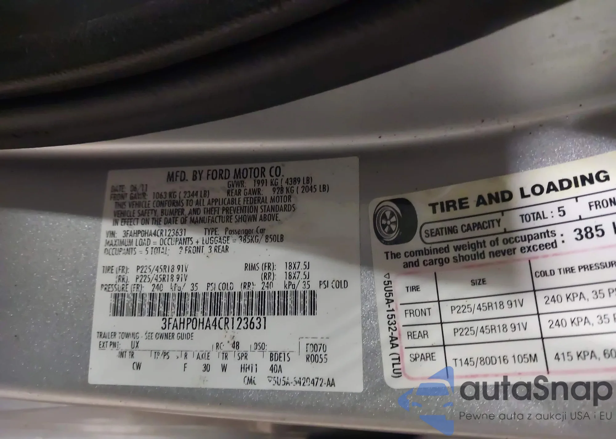 • VIN 3FAHP0HA4CR123631