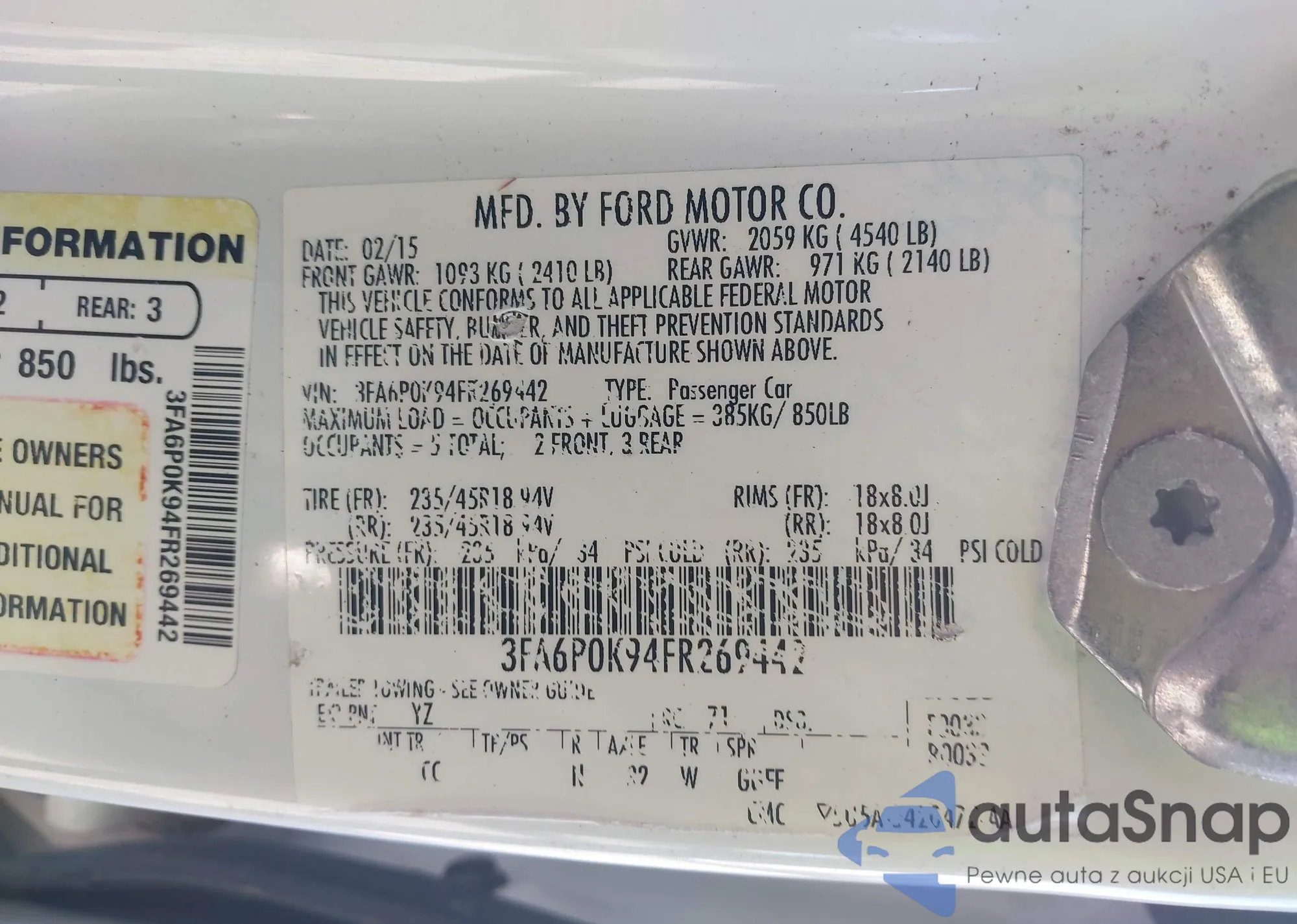 • VIN 3FA6P0K94FR269442