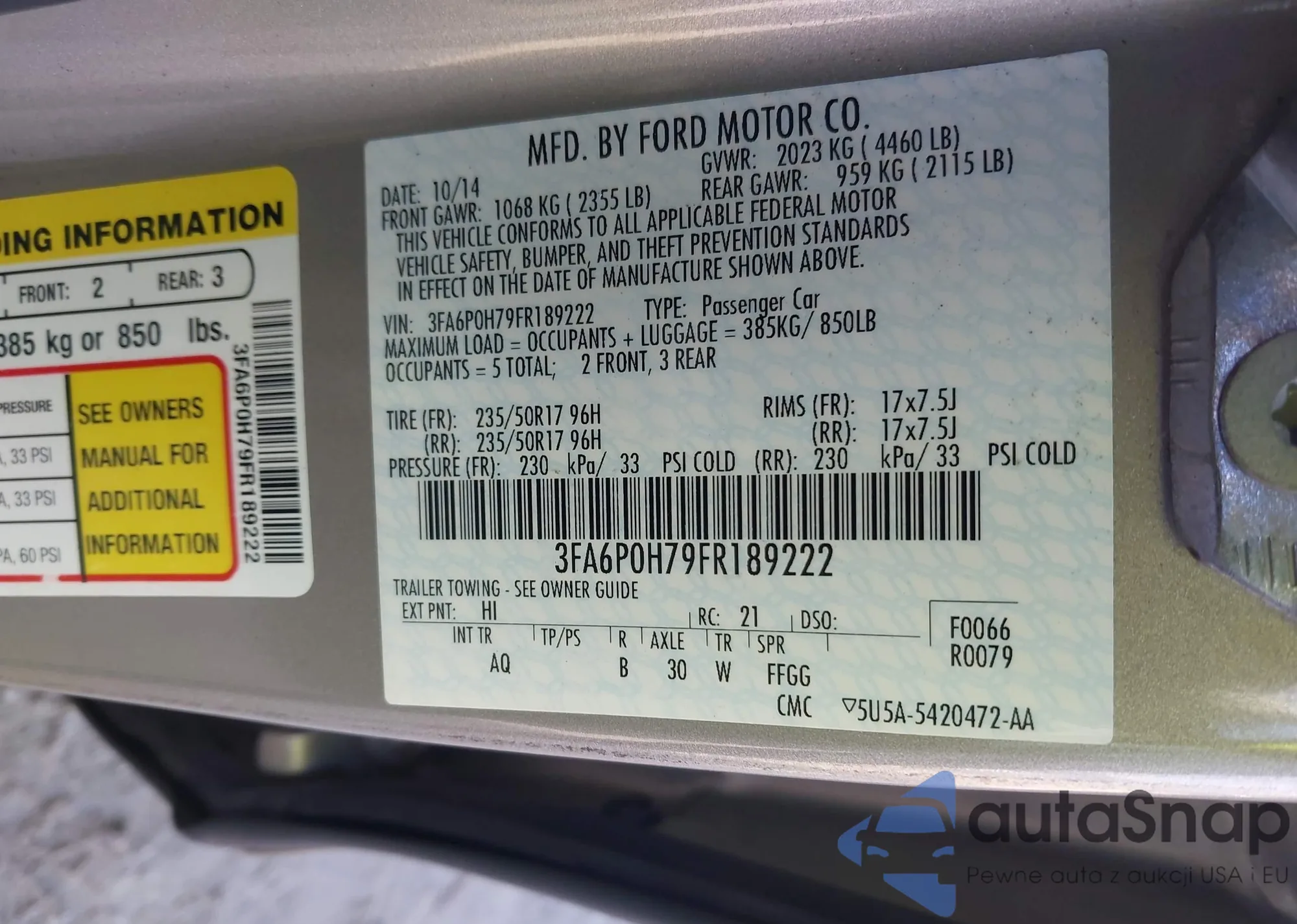 LOT: 43906029 VIN: 3FA6P0H79FR189222