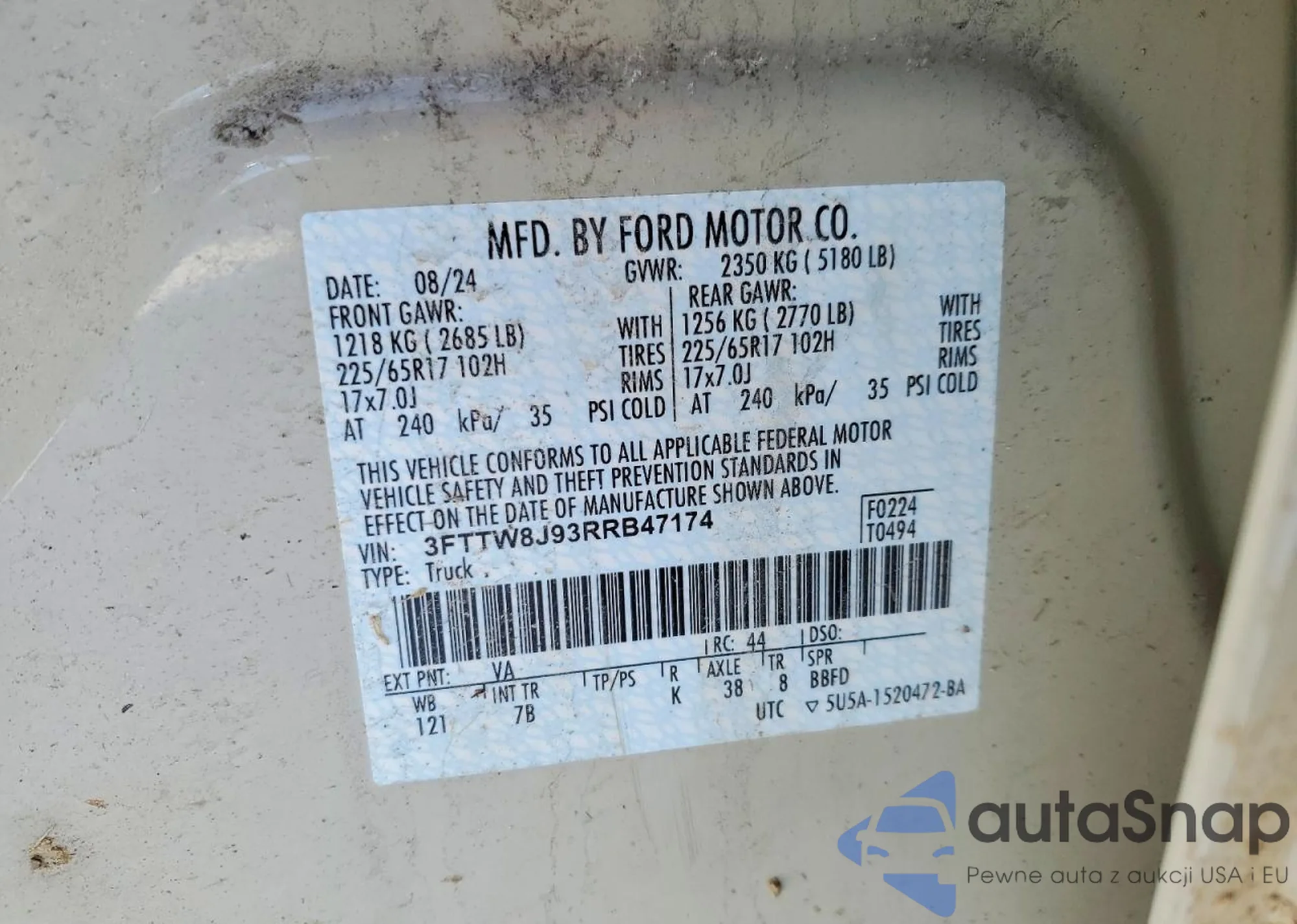 • VIN 3FTTW8JAXSRA81061