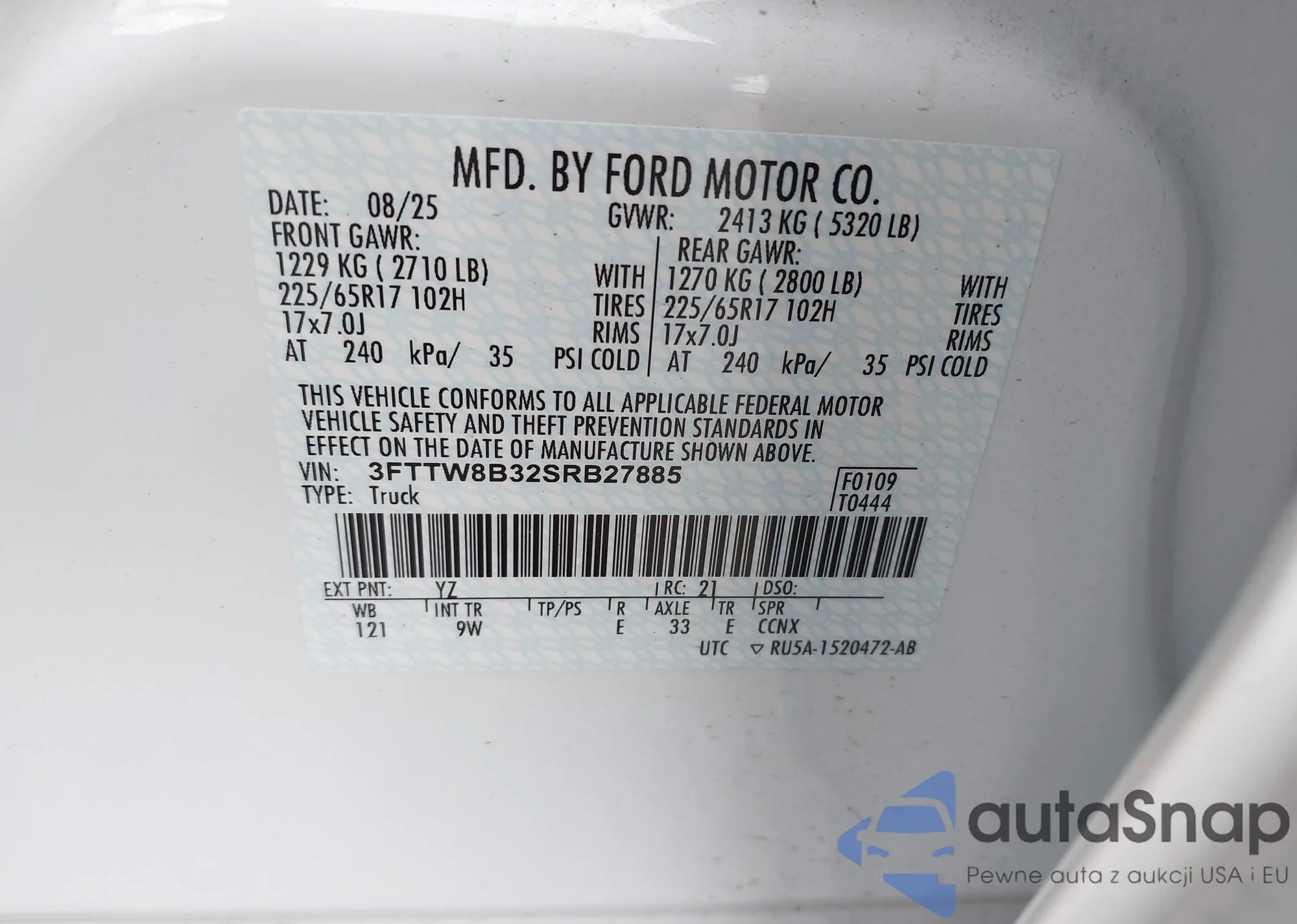• VIN 3FTTW8B32SRB27885