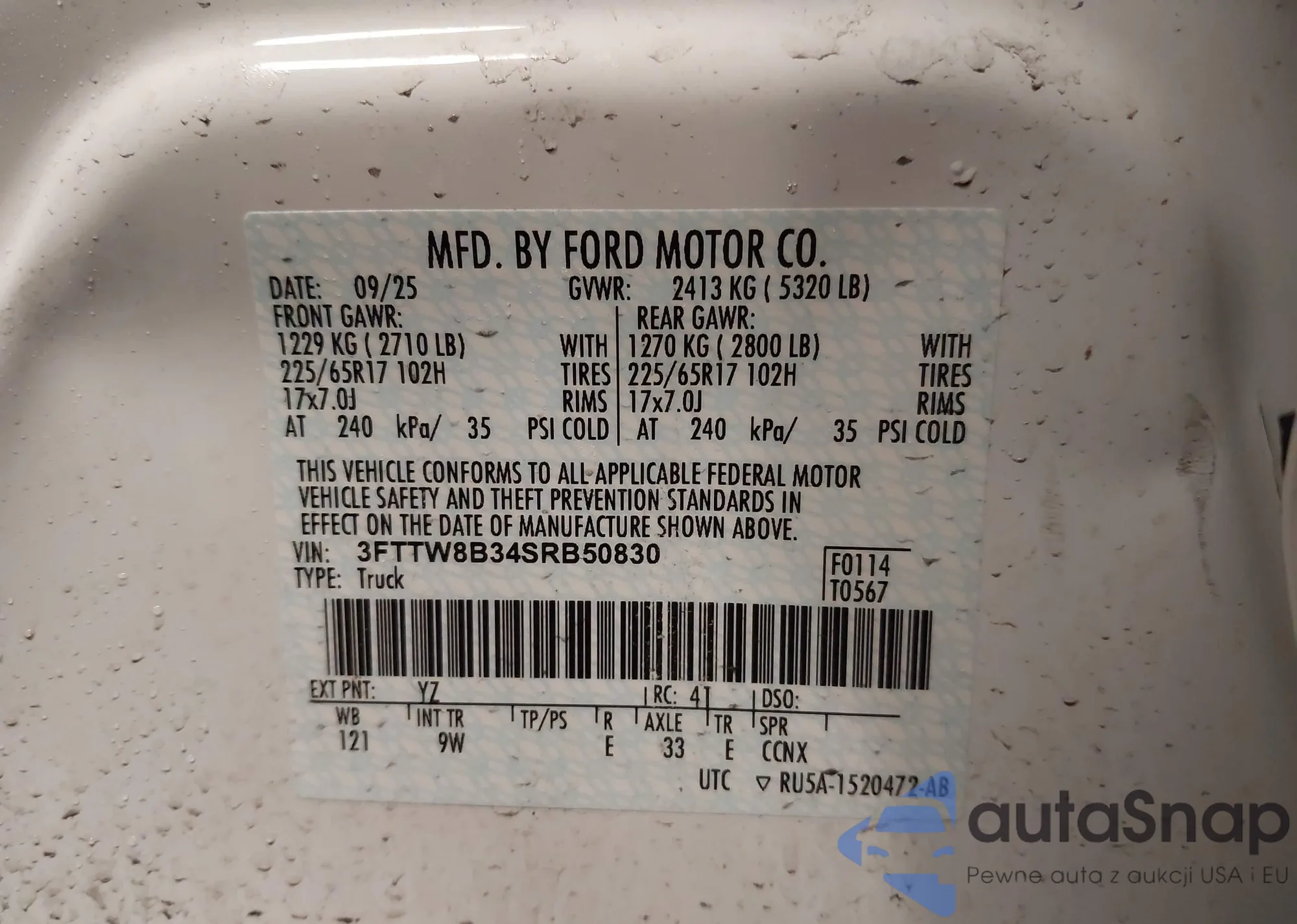 • VIN 3FTTW8A35SRA81311