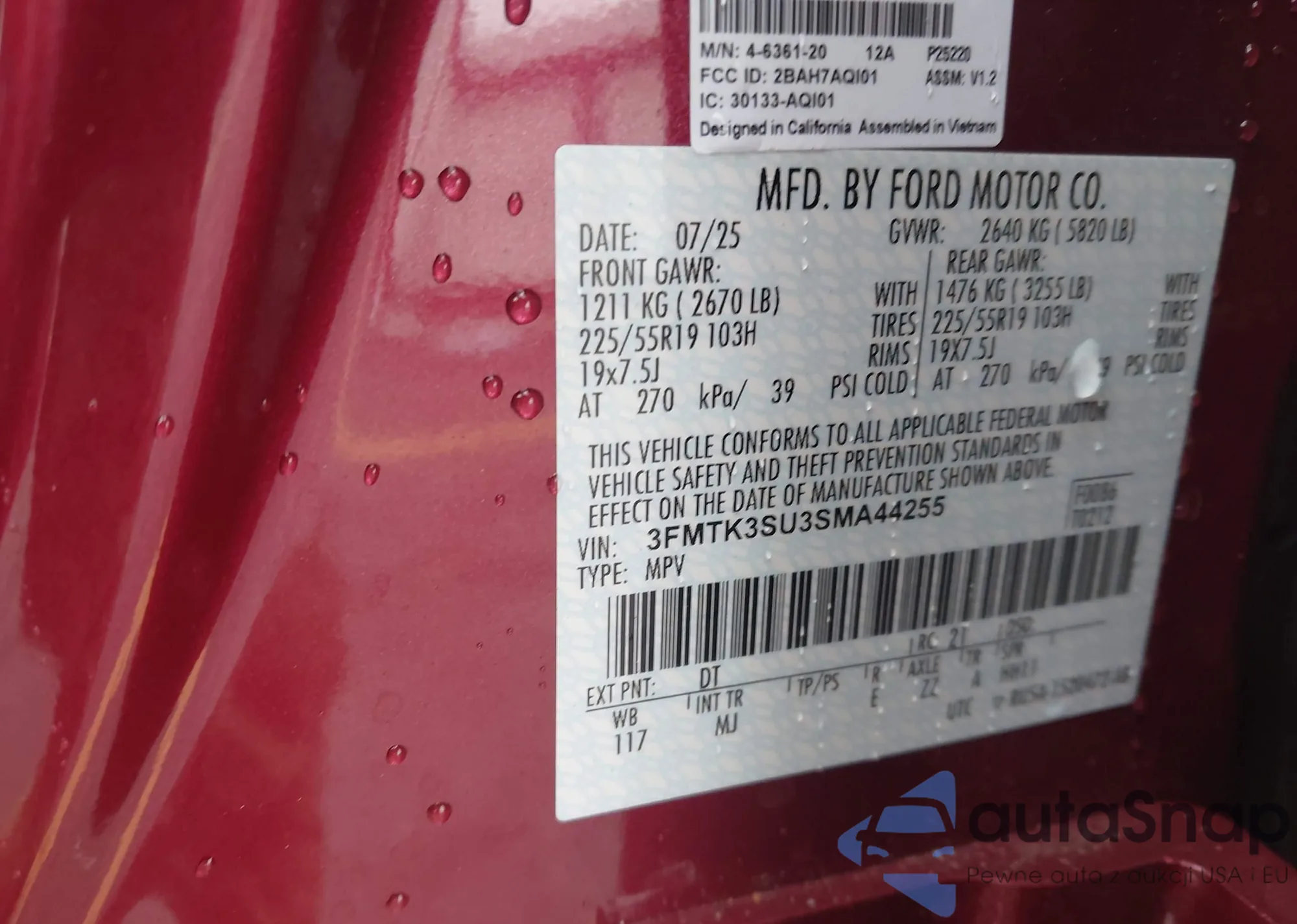• VIN 3FMTK3SU3SMA44255