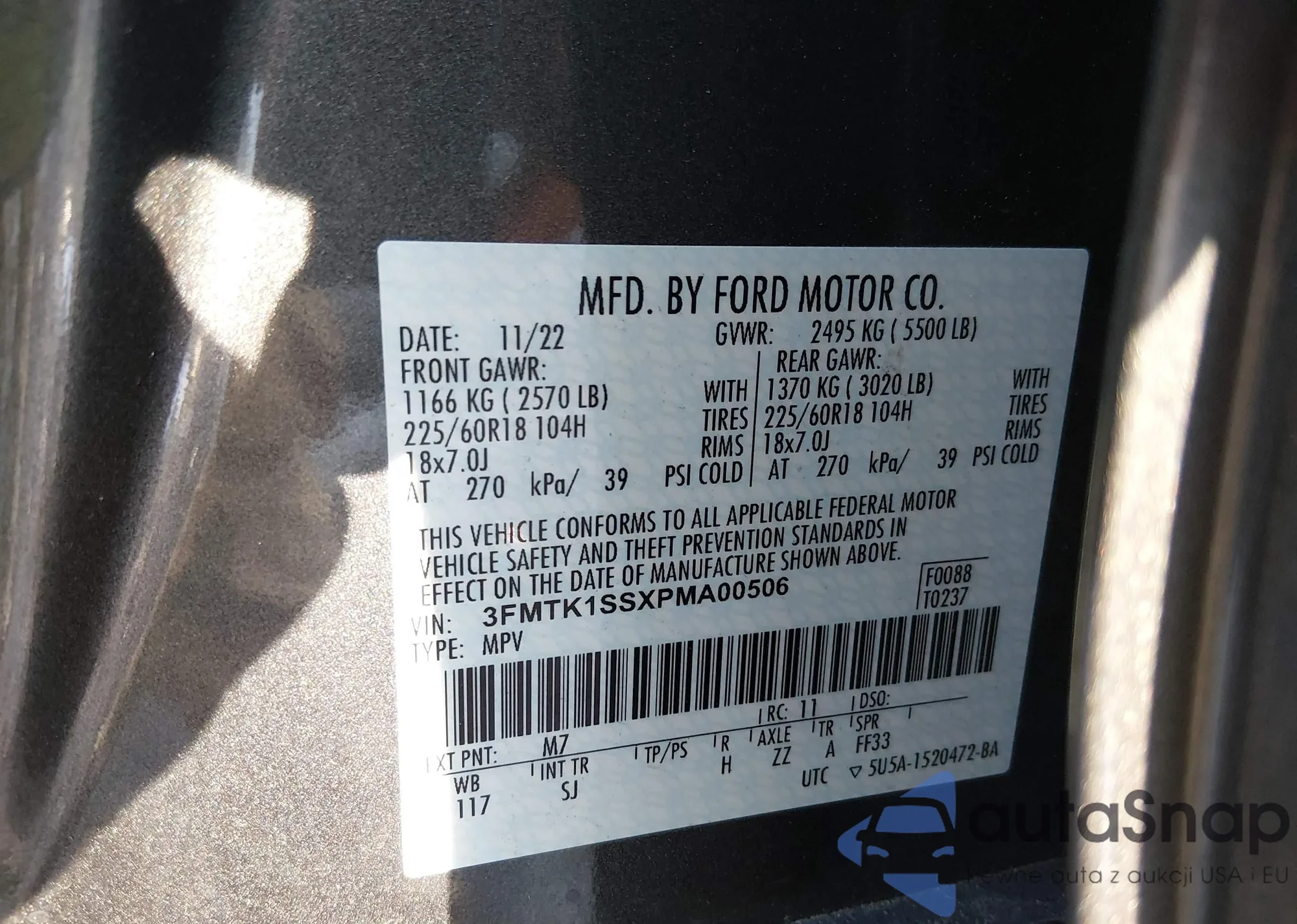 • VIN 3FMTK1SSXPMA00506