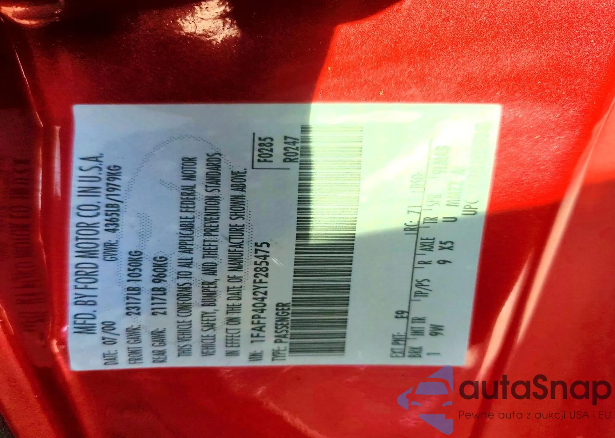 • VIN 1FAFP4042YF285475