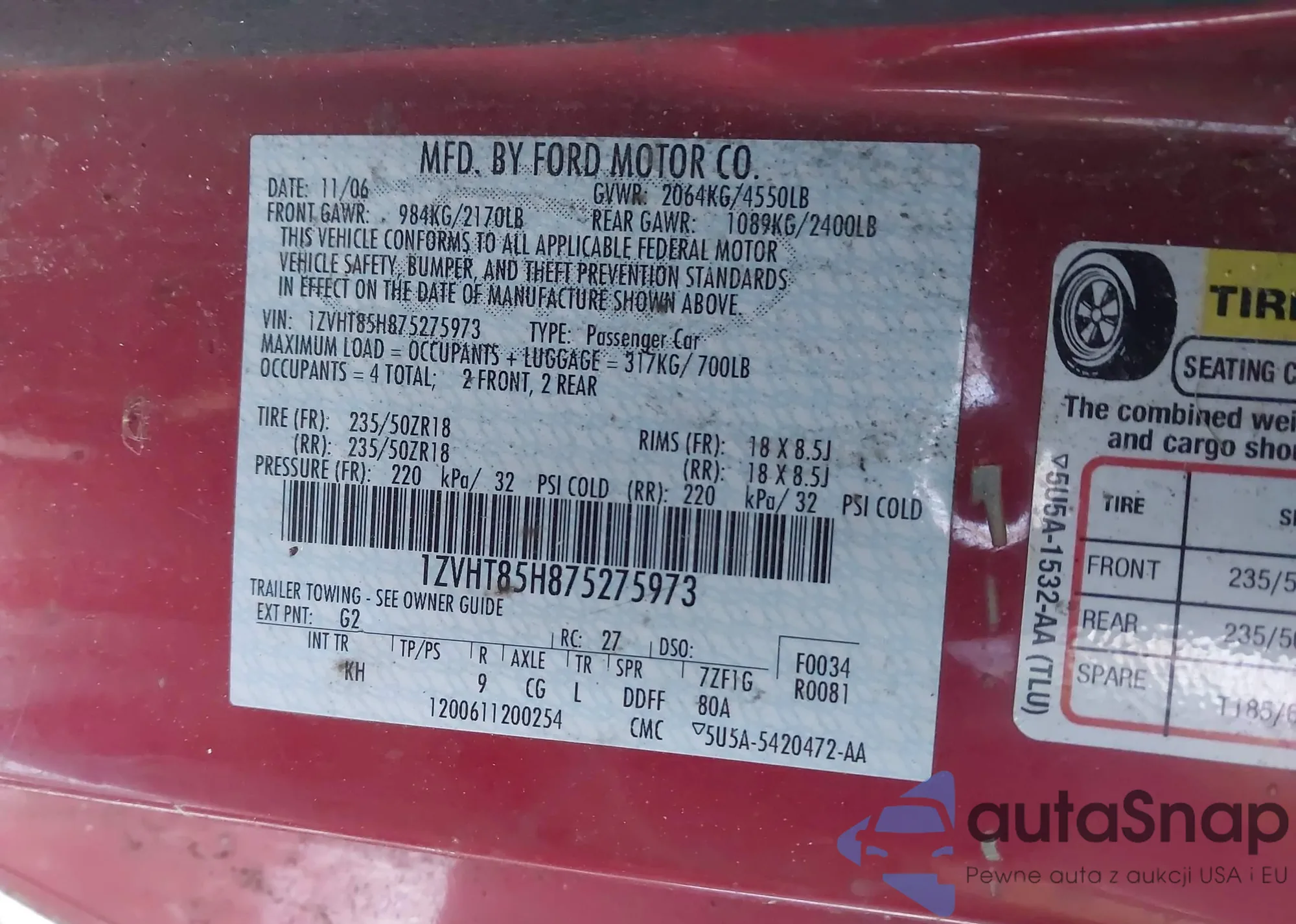 • VIN 1ZVHT85H875275973