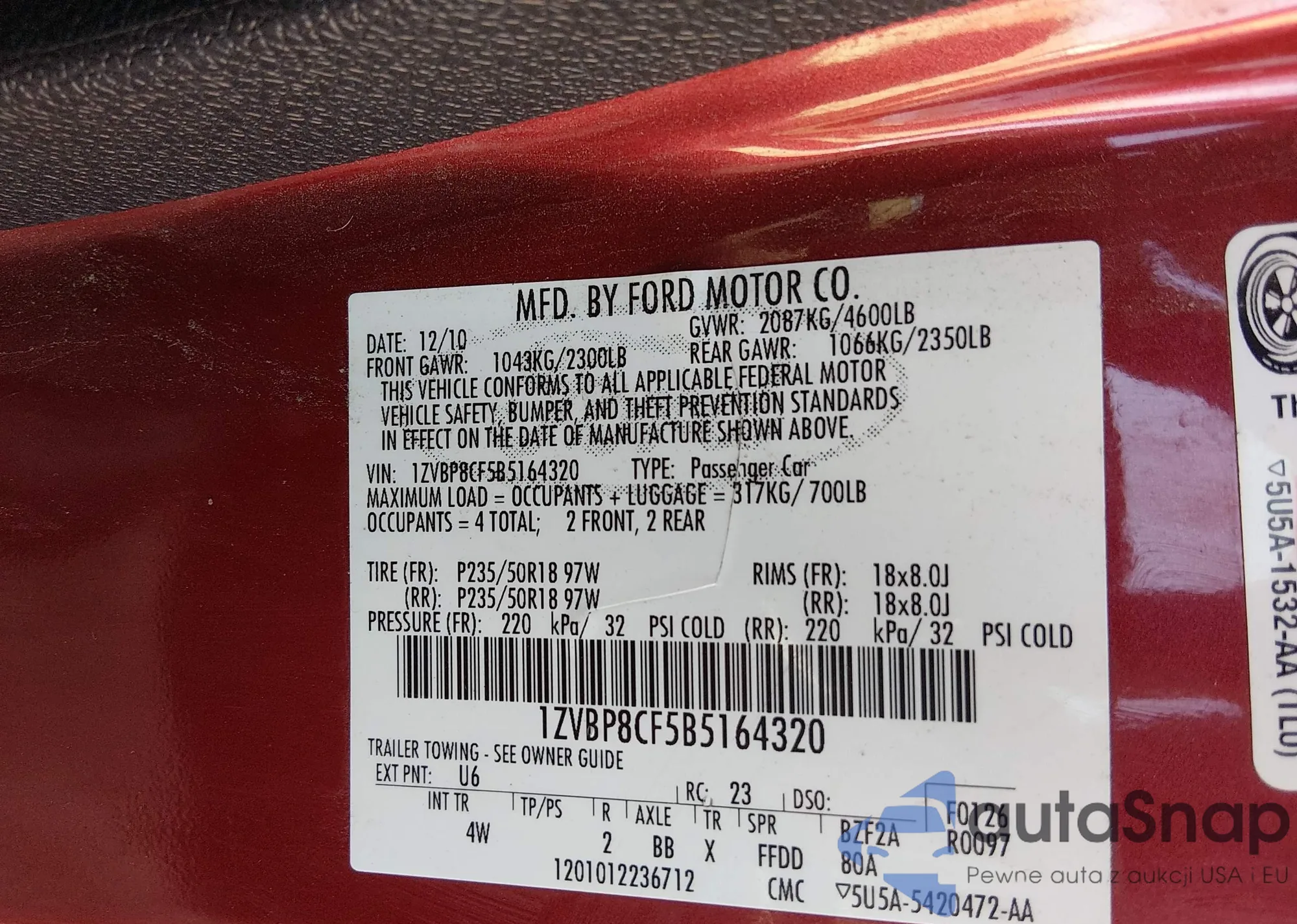 • VIN 1ZVBP8CF5B5164320