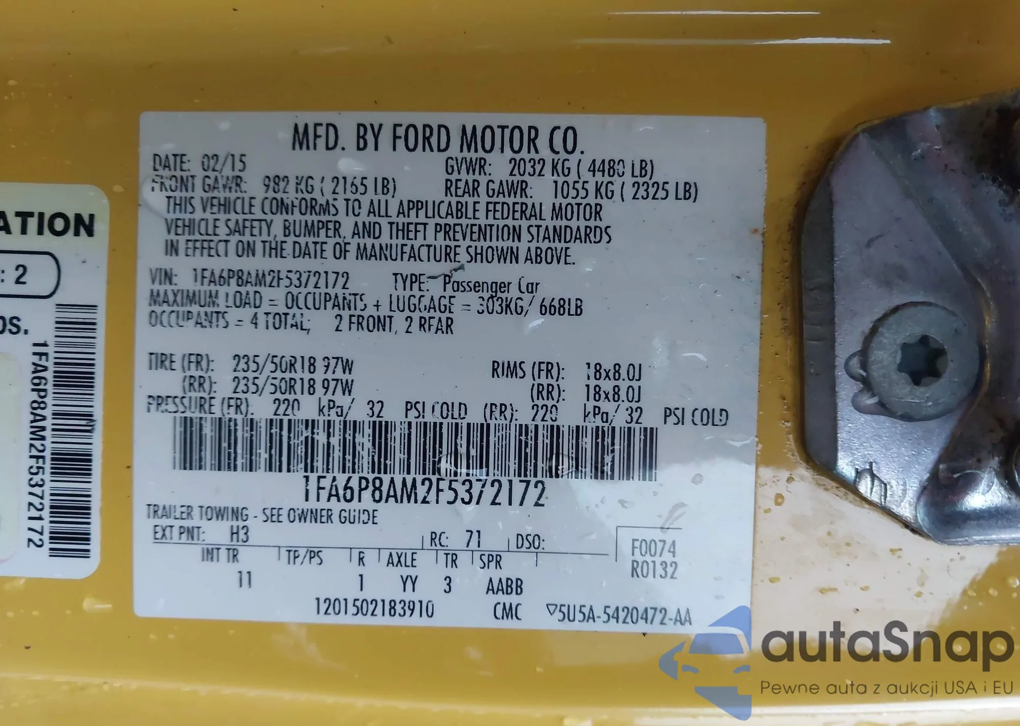 • VIN 1FA6P8AM2F5372172
