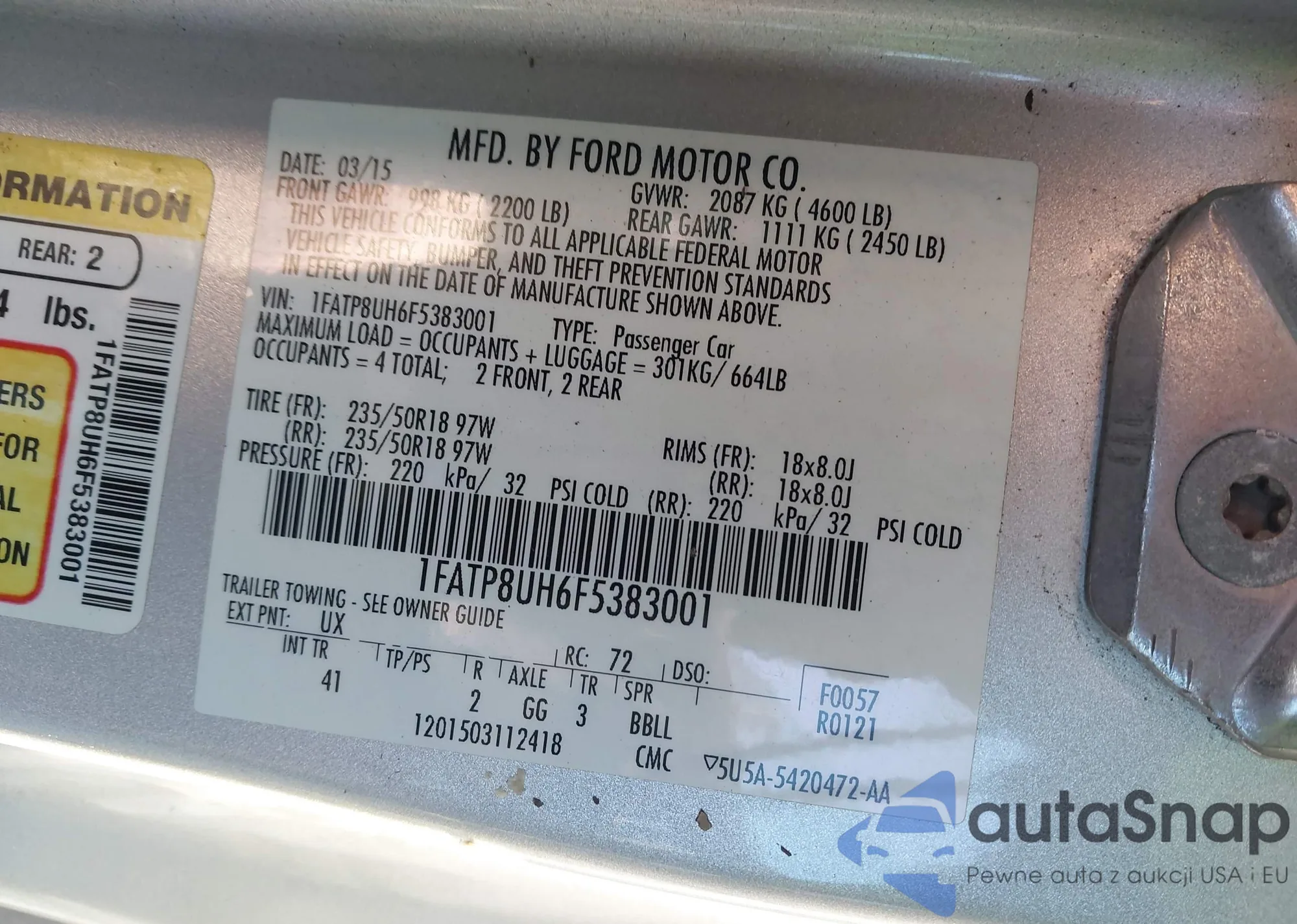 LOT: 44014896 VIN: 1FATP8UH6F5383001