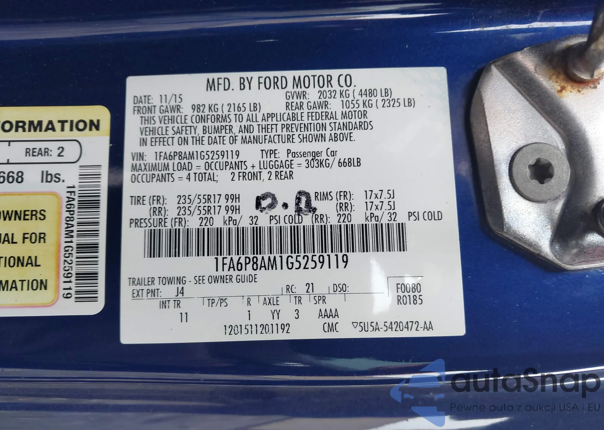 • VIN 1FA6P8AM1G5259119