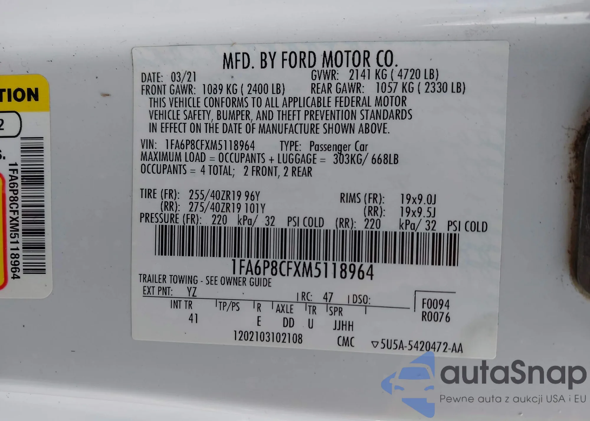 • VIN 1FA6P8CFXM5118964