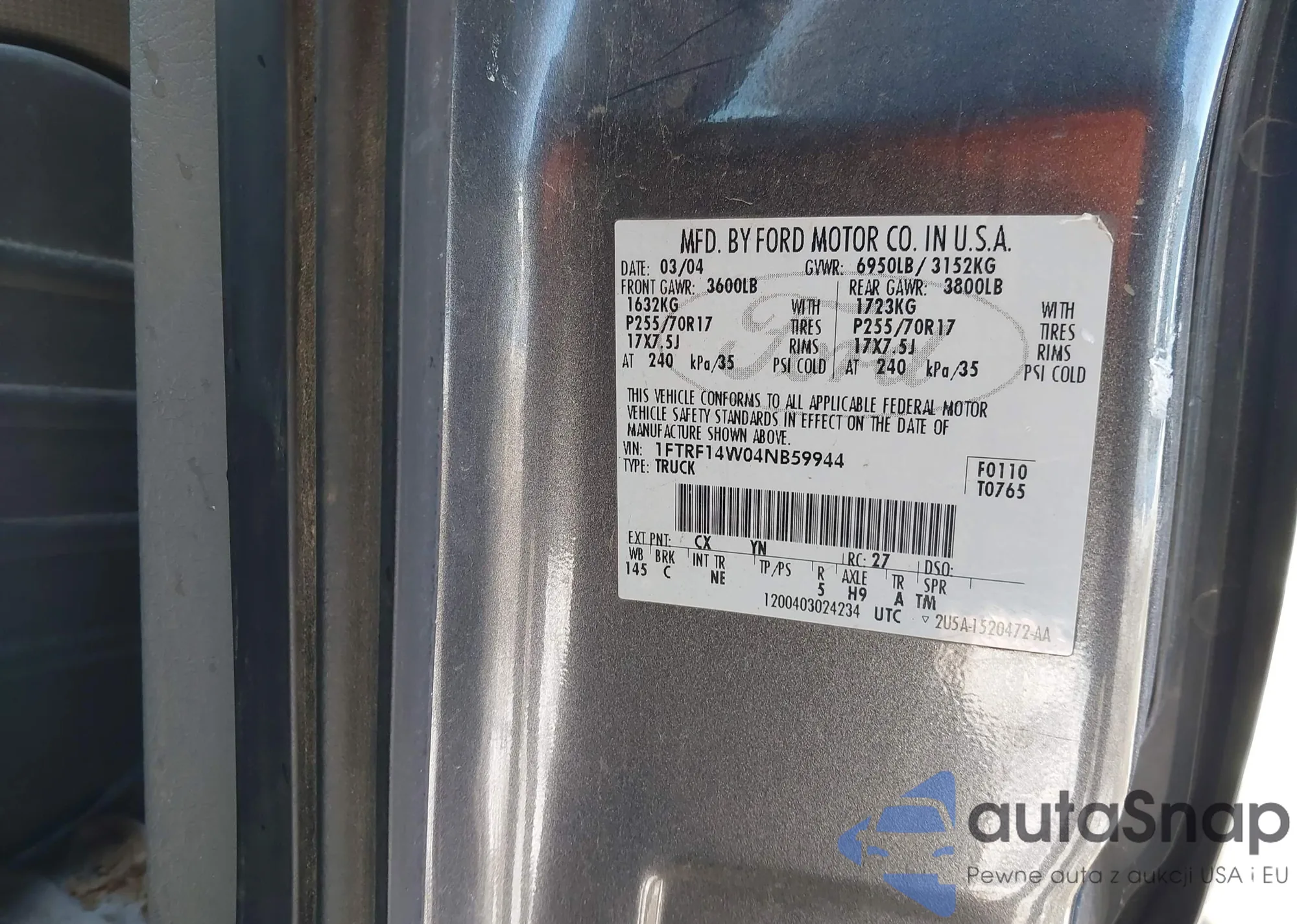 • VIN 1FTRF14W04NB59944