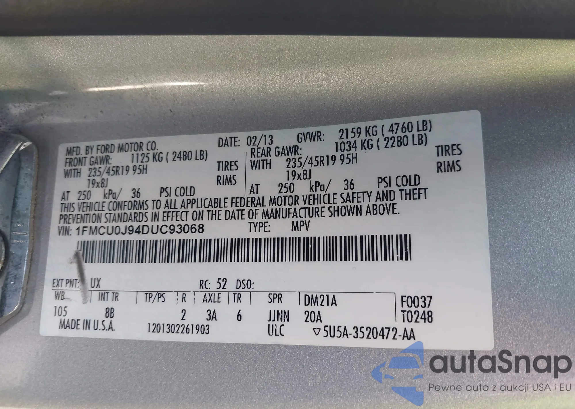 • VIN 1FMCU0J94DUC93068