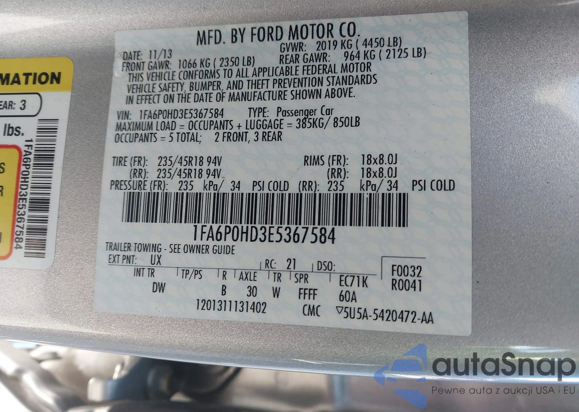 • VIN 1FA6P0HD3E5367584