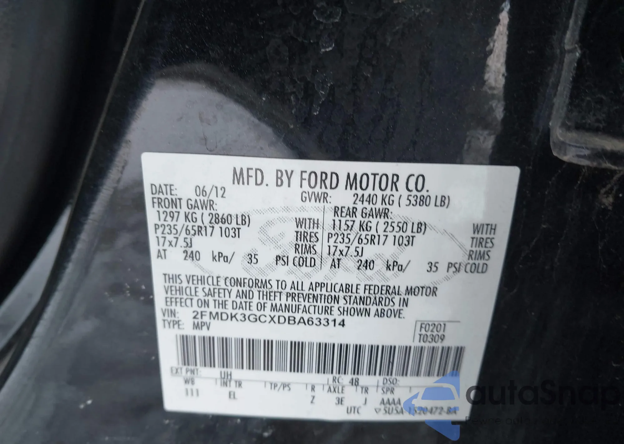 • VIN 2FMDK3GCXDBA63314