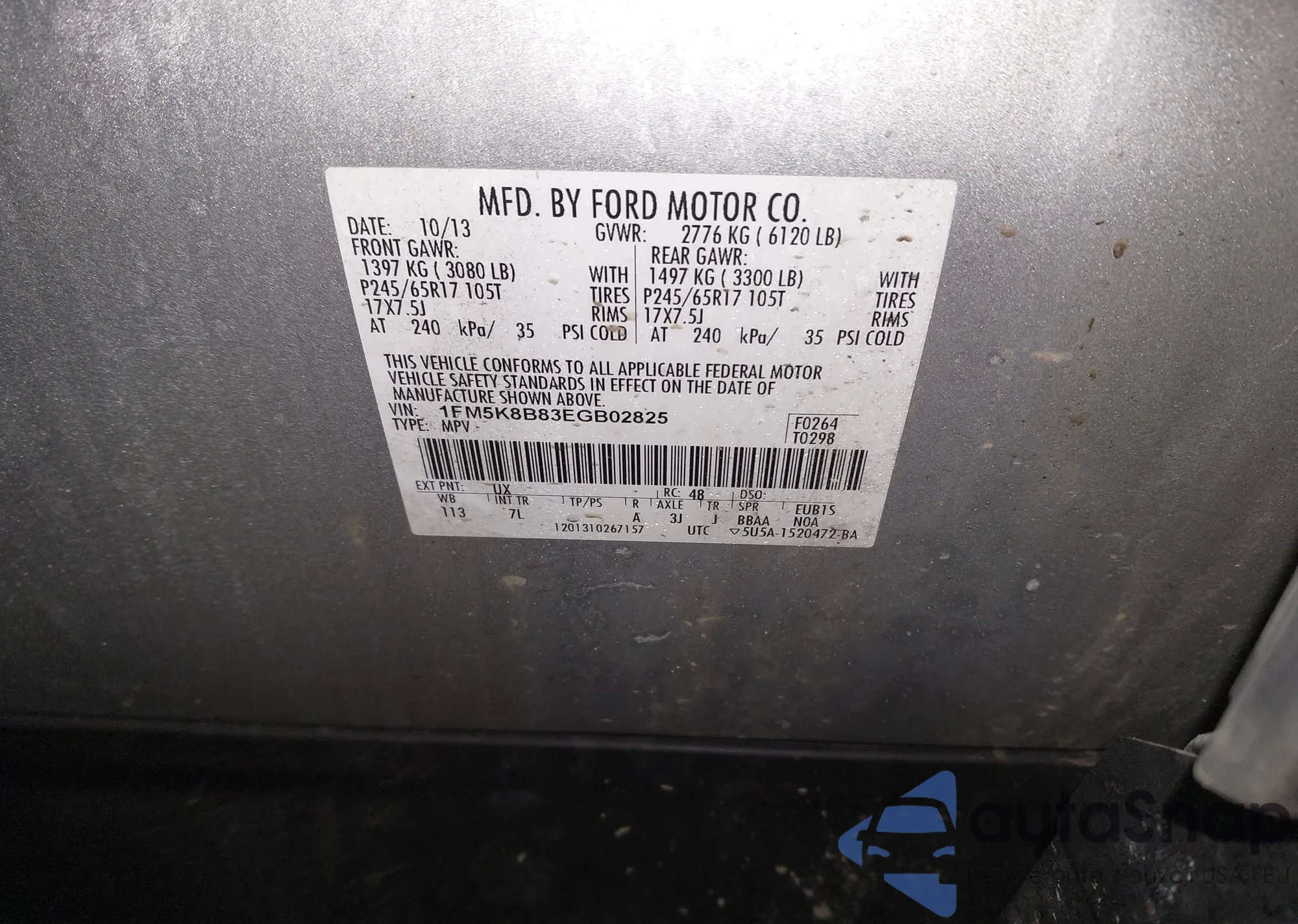 • VIN 1FM5K8B83EGB02825