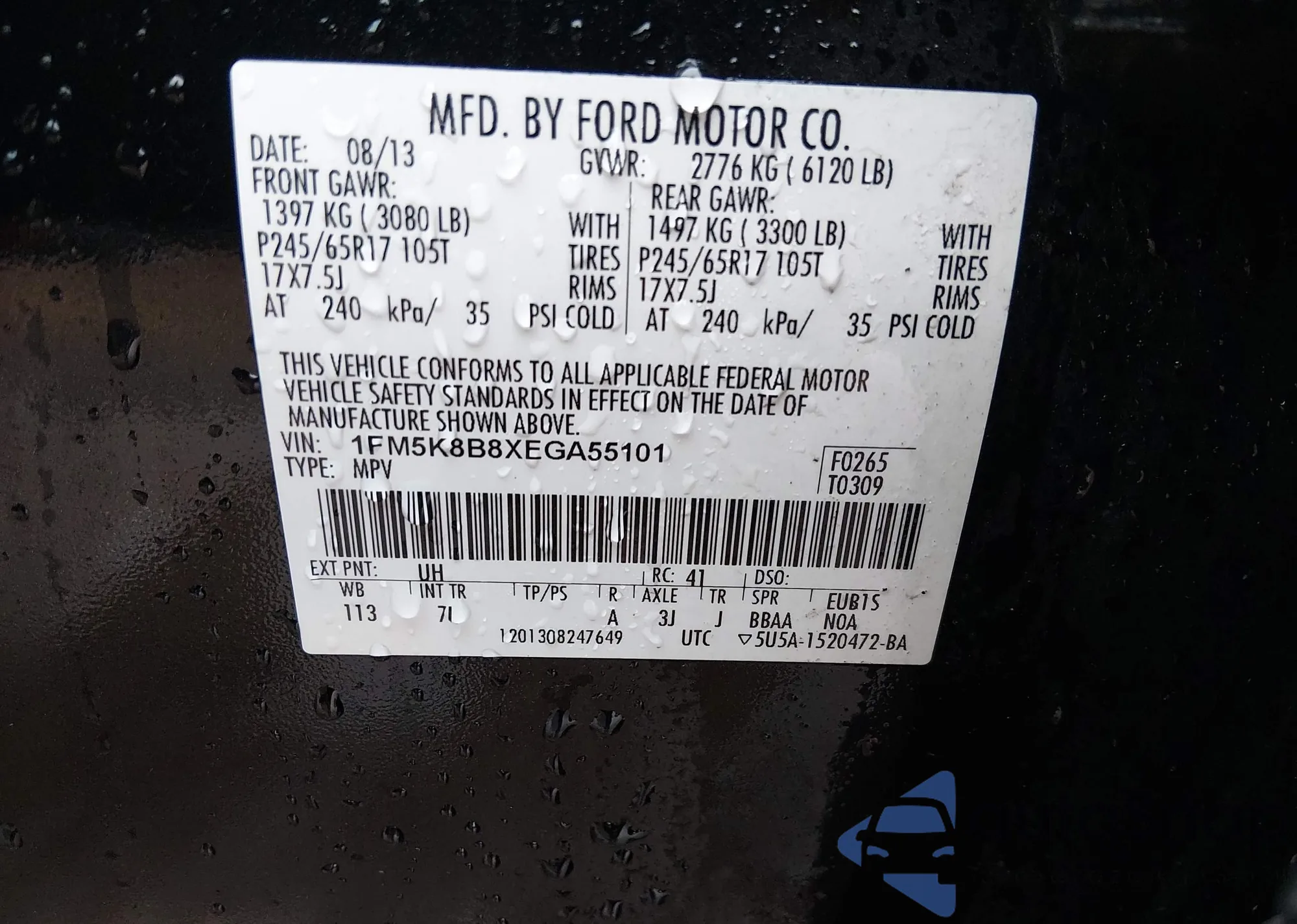 • VIN 1FM5K8B8XEGA55101