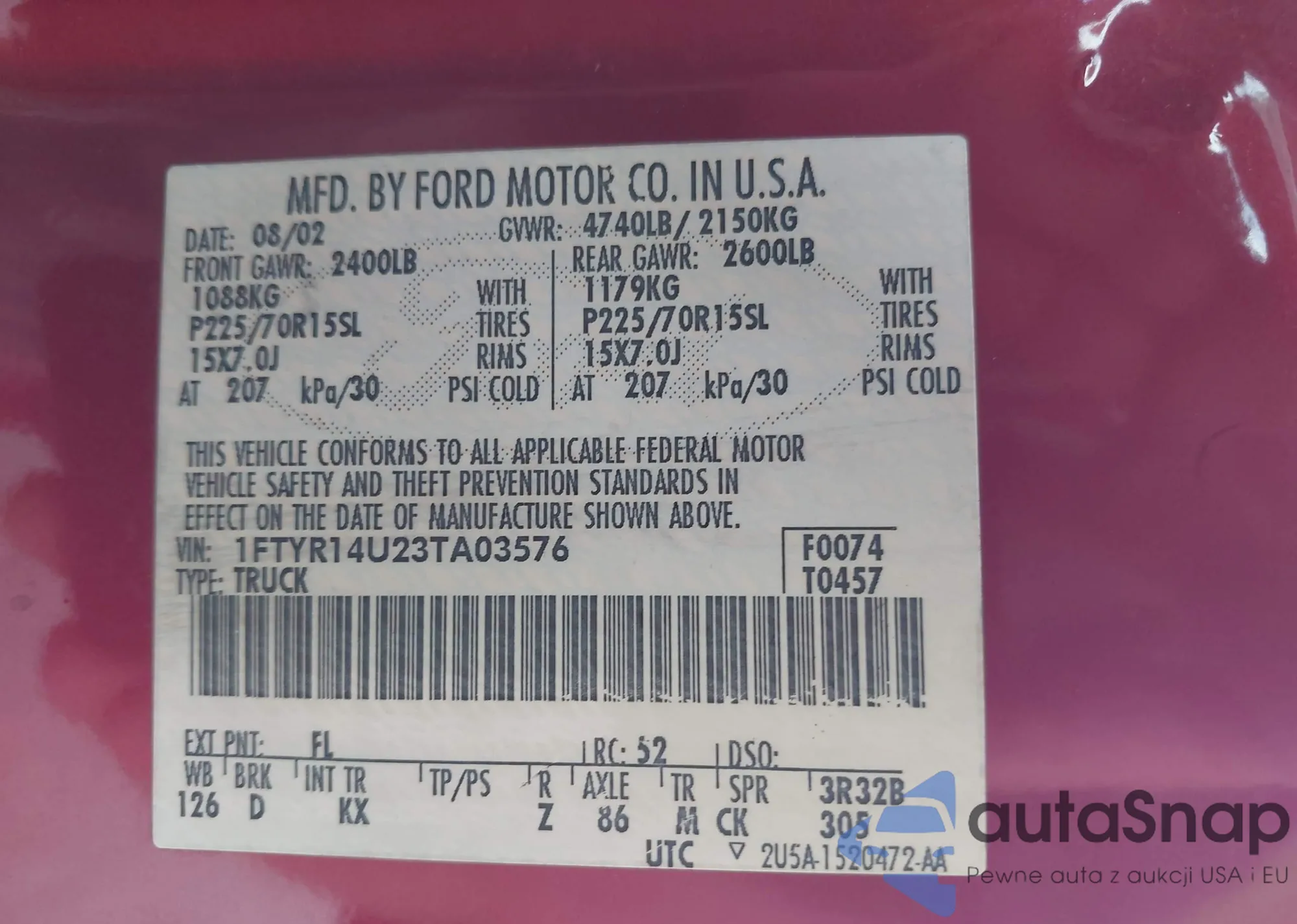 LOT: 43740581 VIN: 1FTYR14U23TA03576