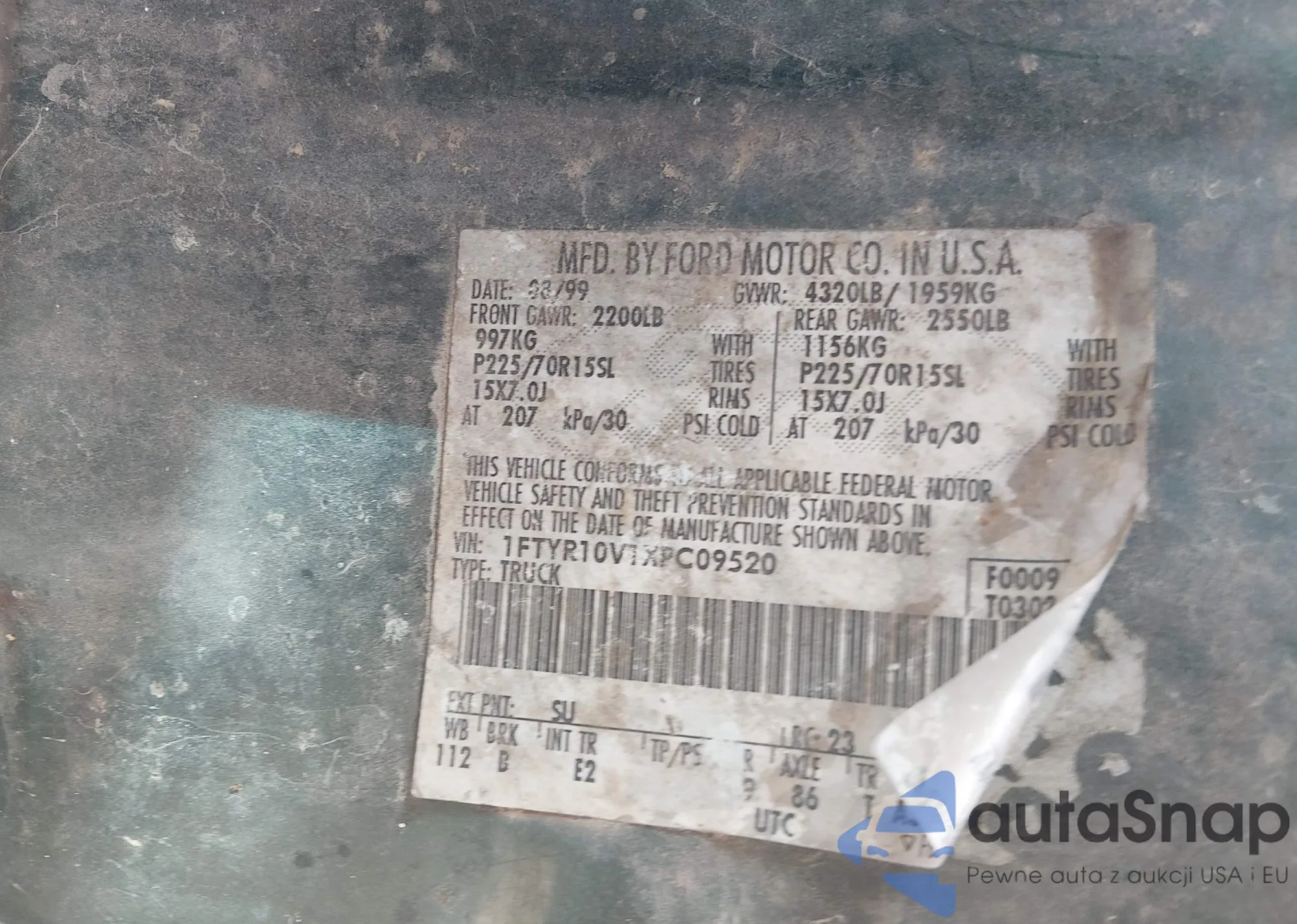 • VIN 1FTYR10V1XPC09520