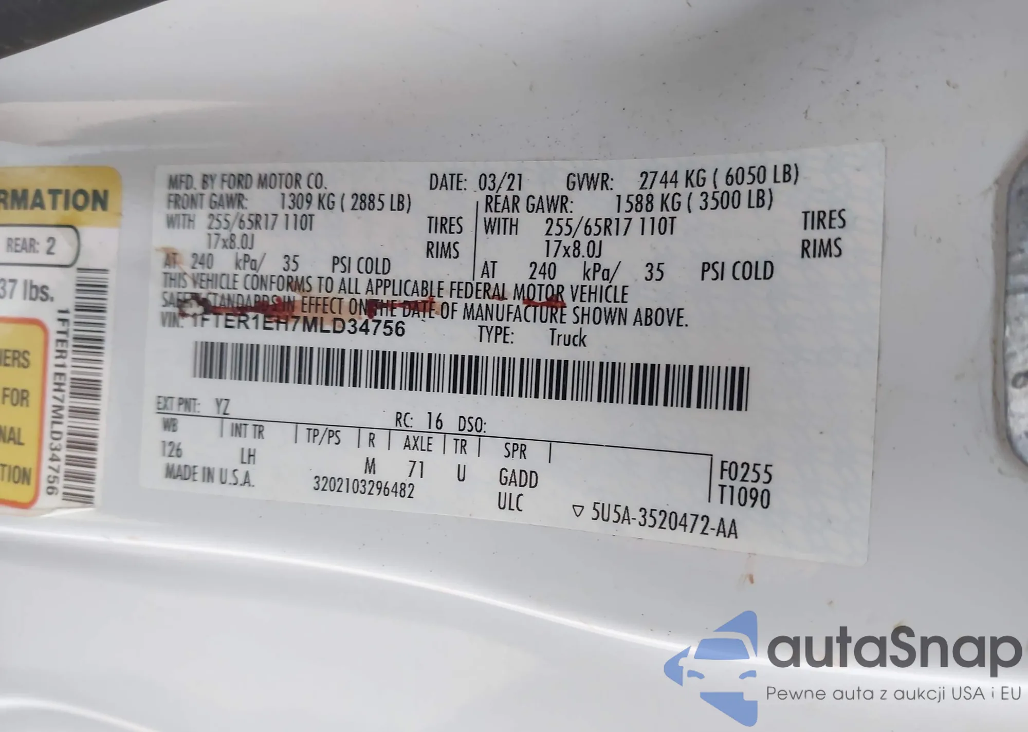 LOT: 43916839 VIN: 1FTER1EH7MLD34756