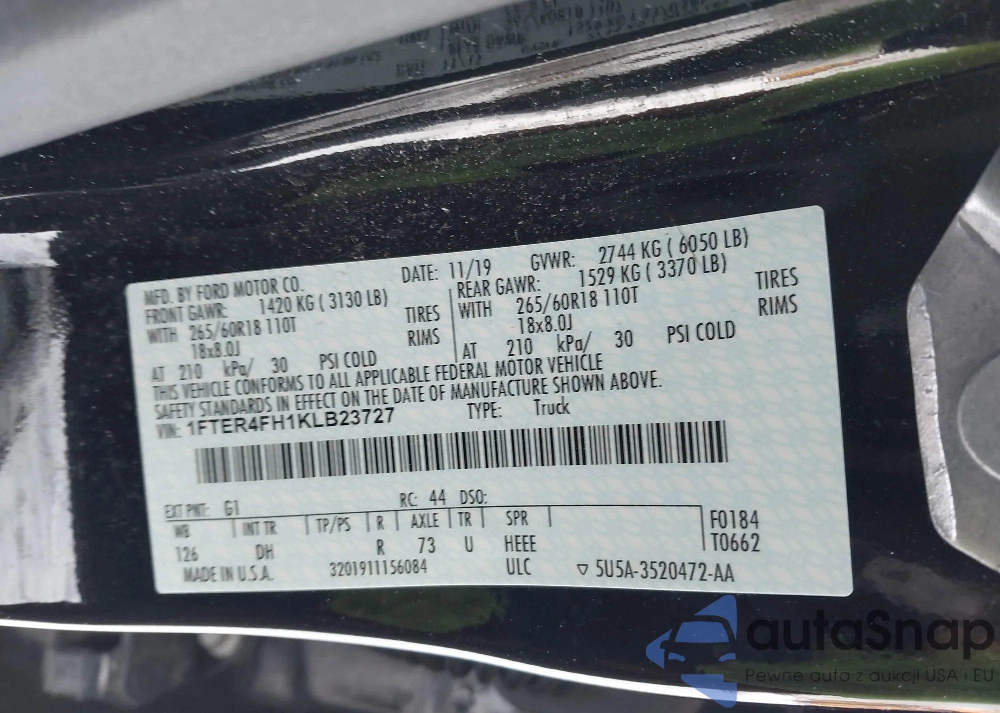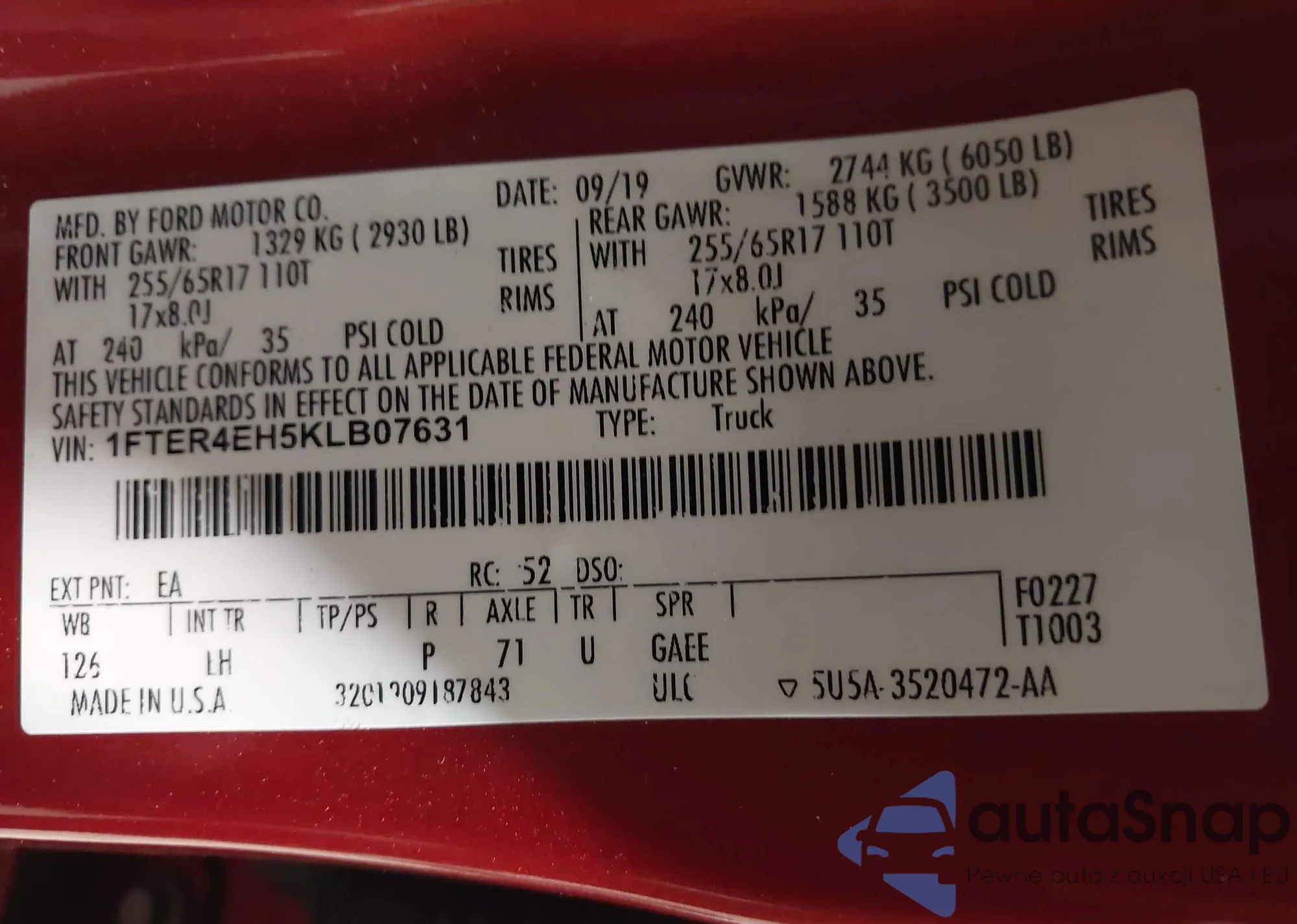 LOT: 44252911 VIN: 1FTER4FH1KLB23727