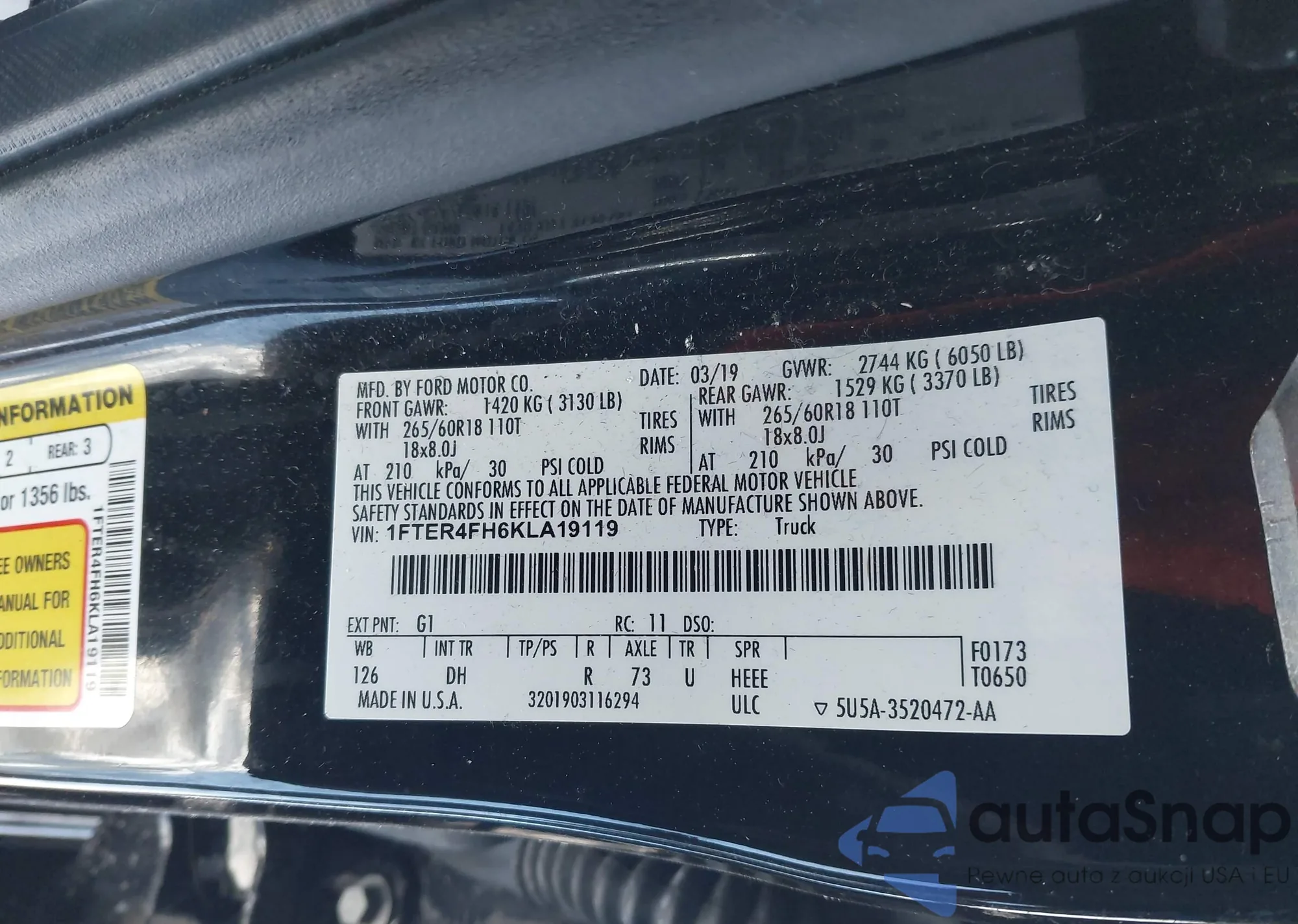 LOT: 44456840 VIN: 1FTER4FH3KLA01435