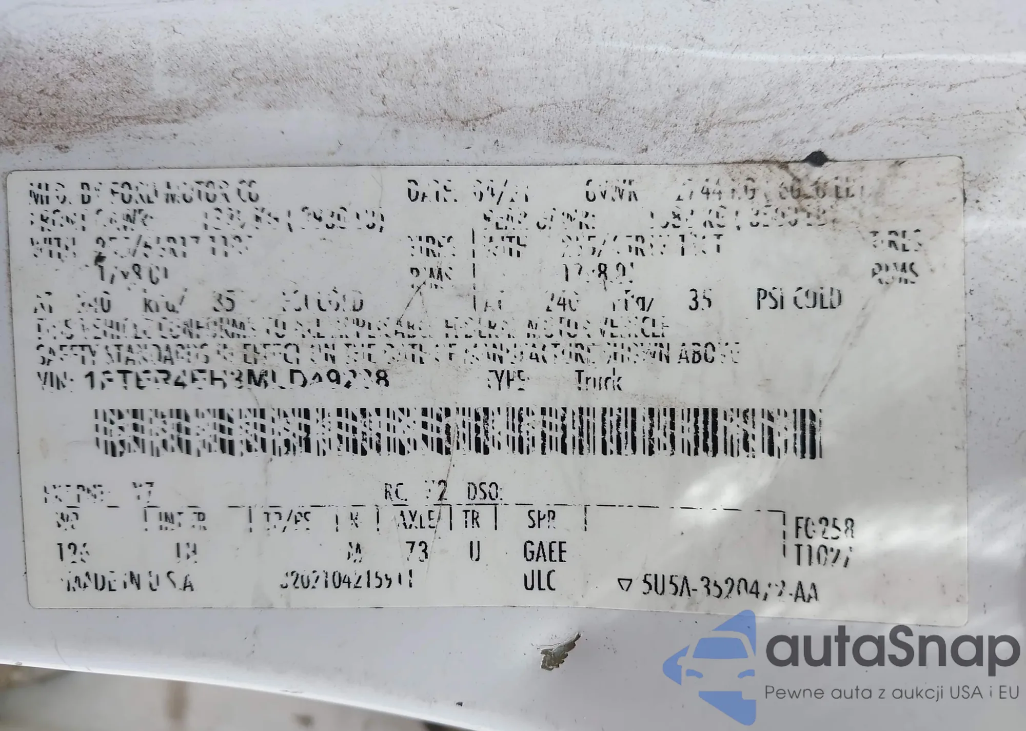 LOT: 68045613 VIN: 1FTER1EH0MLD10332