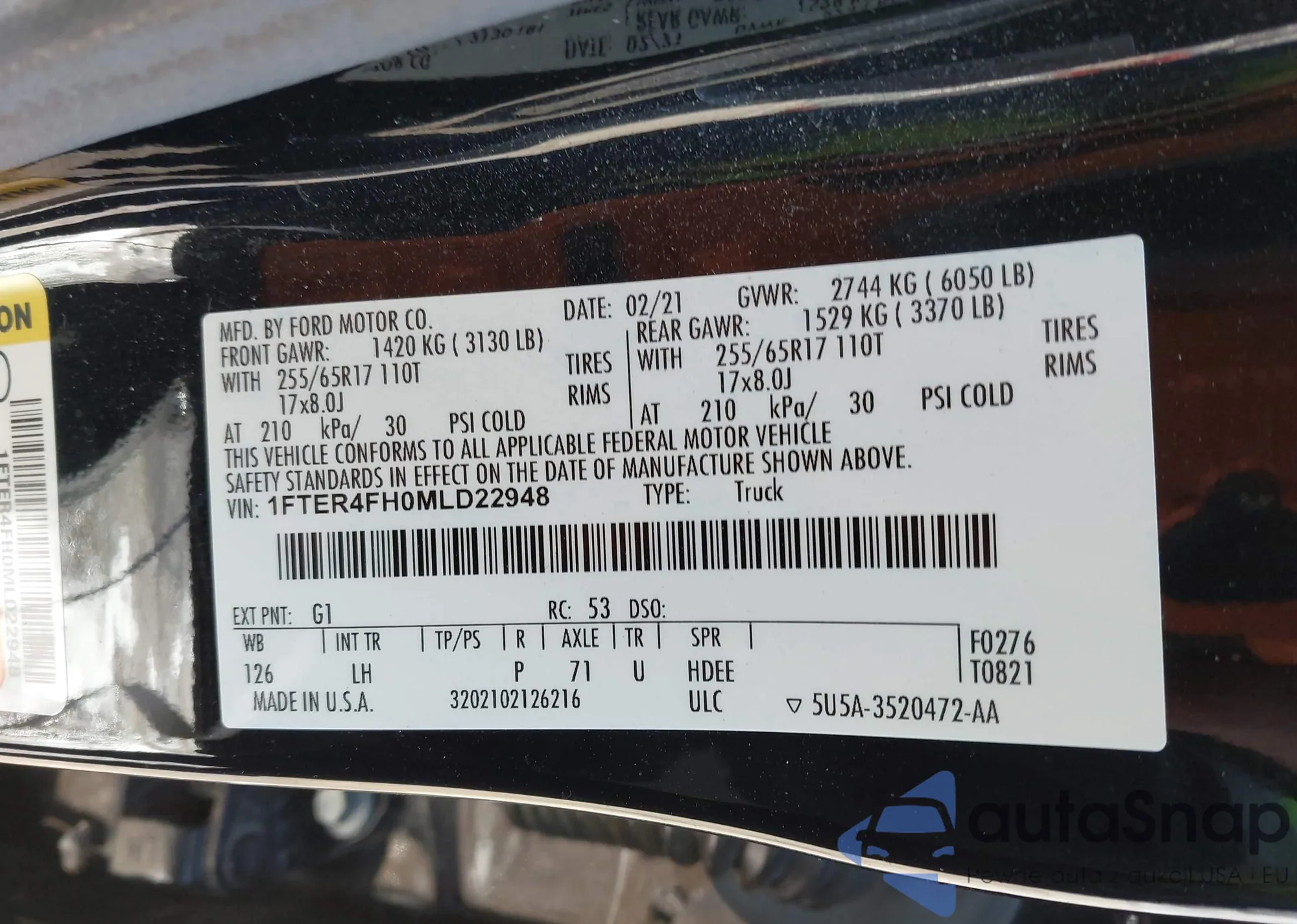 LOT: 44484387 VIN: 1FTER4FH0MLD22948