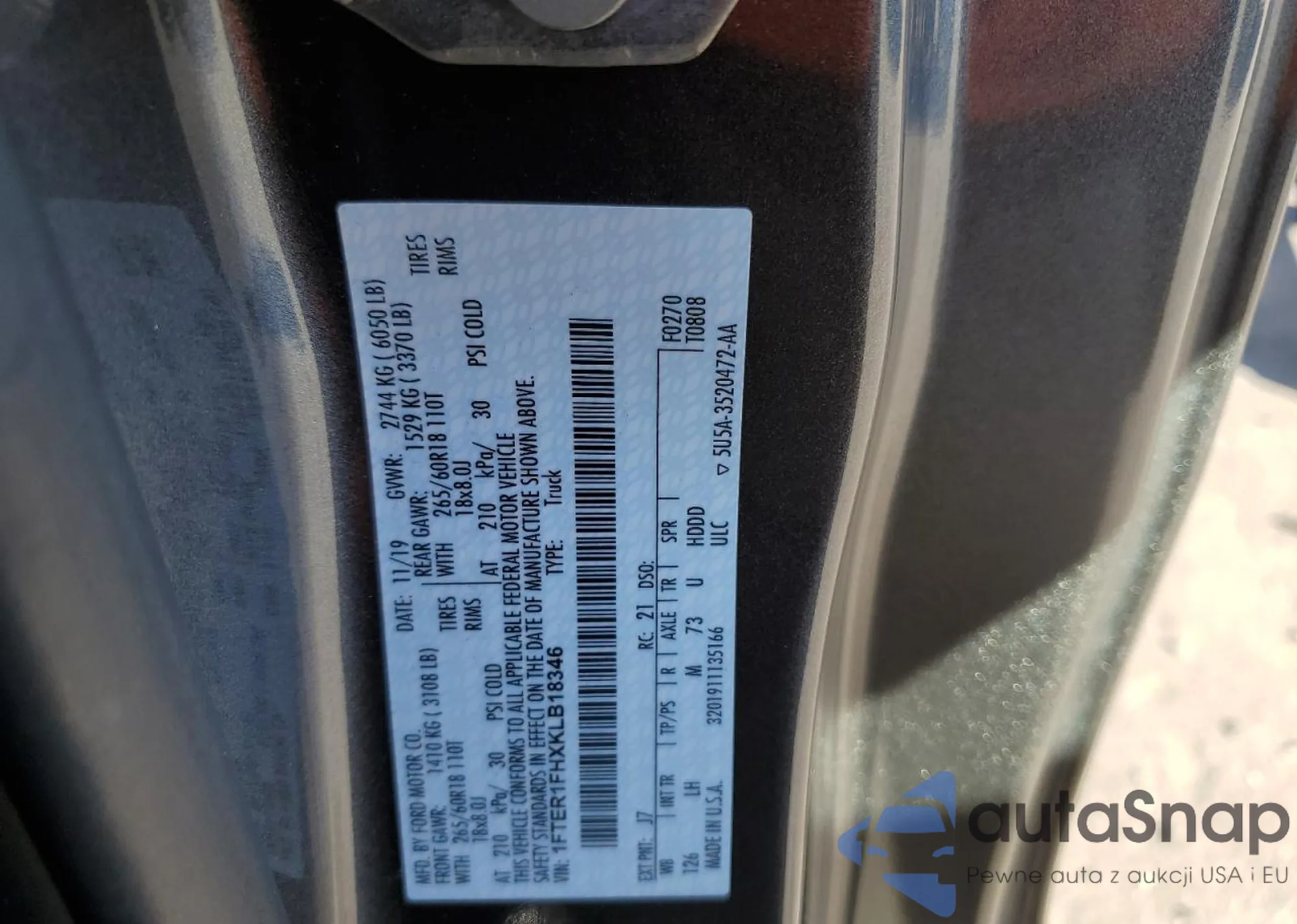 LOT: 82902583 VIN: 1FTER1FHXKLB18346