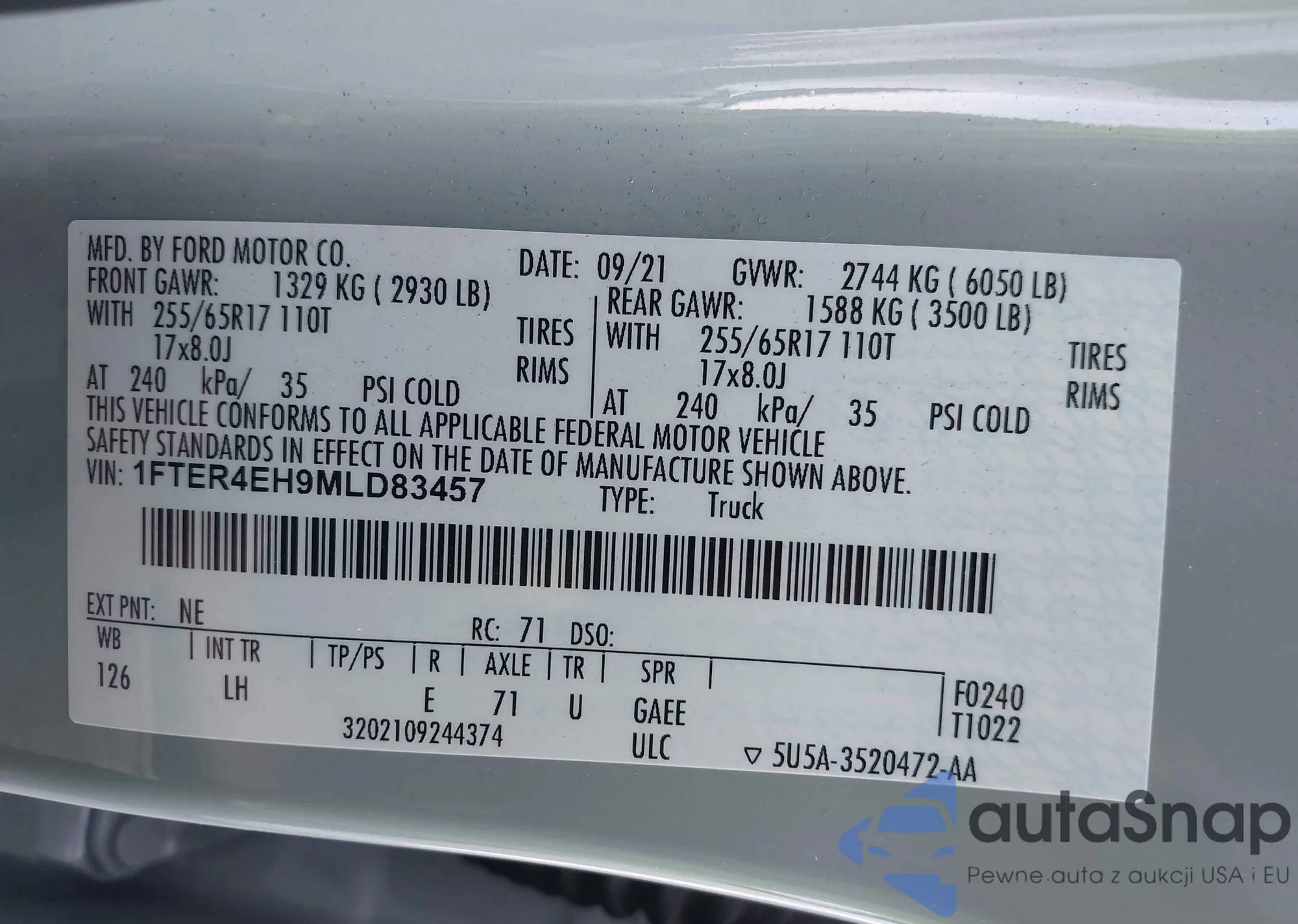 LOT: 44255191 VIN: 1FTER4EH9MLD83457